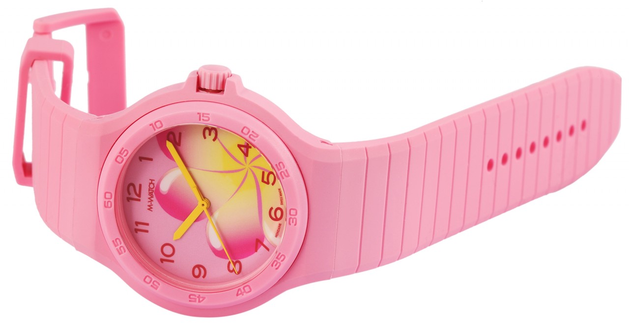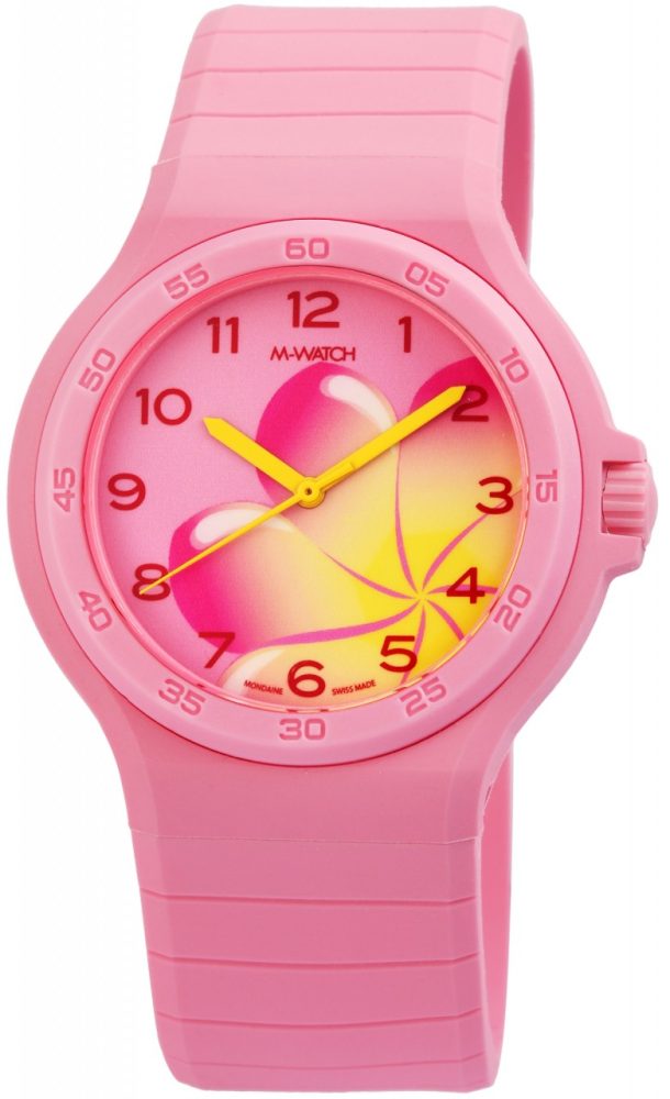 Relógio de senhora M SWISS Watch Mulher Pink Love com Bracelete em Silicone