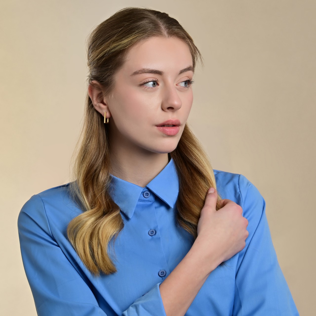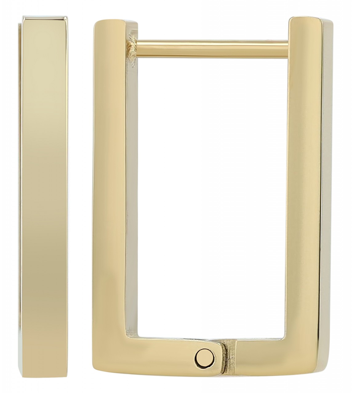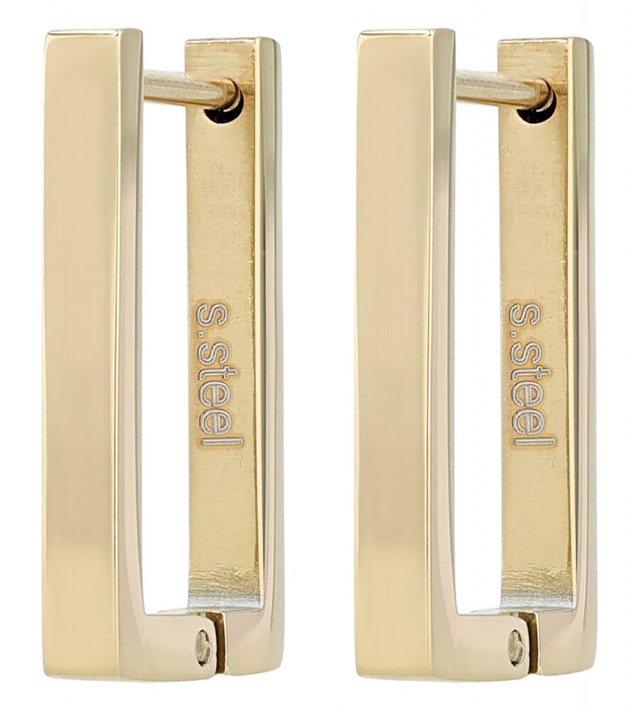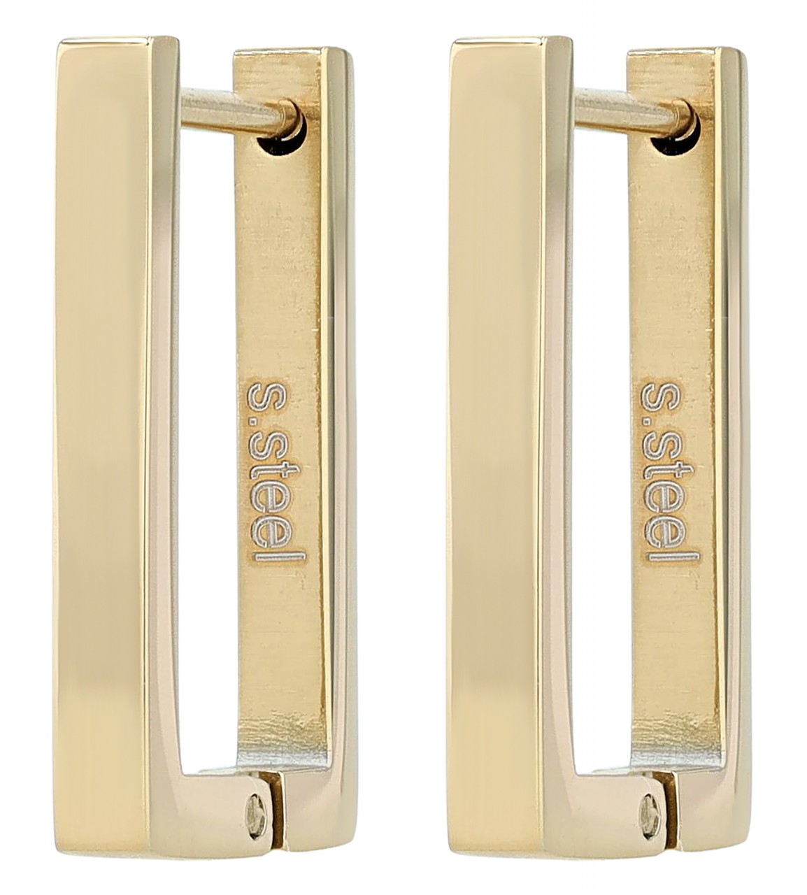 Os brincos de argola retangulares são feitos de aço inoxidável e têm um visual simples e brilhante. O fecho é feito de aço inoxidável e é prático, permitindo fácil colocação e retirada, além de garantir uma fixação segura no orifício da orelha. Têm 20 mm de altura, 3 mm de largura e 2 mm de espessura e estão disponíveis em três cores.