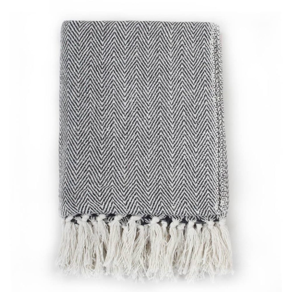 Manta em algodão 160x210 cm padrão espinha azul-marinho - PORTES GRÁTIS