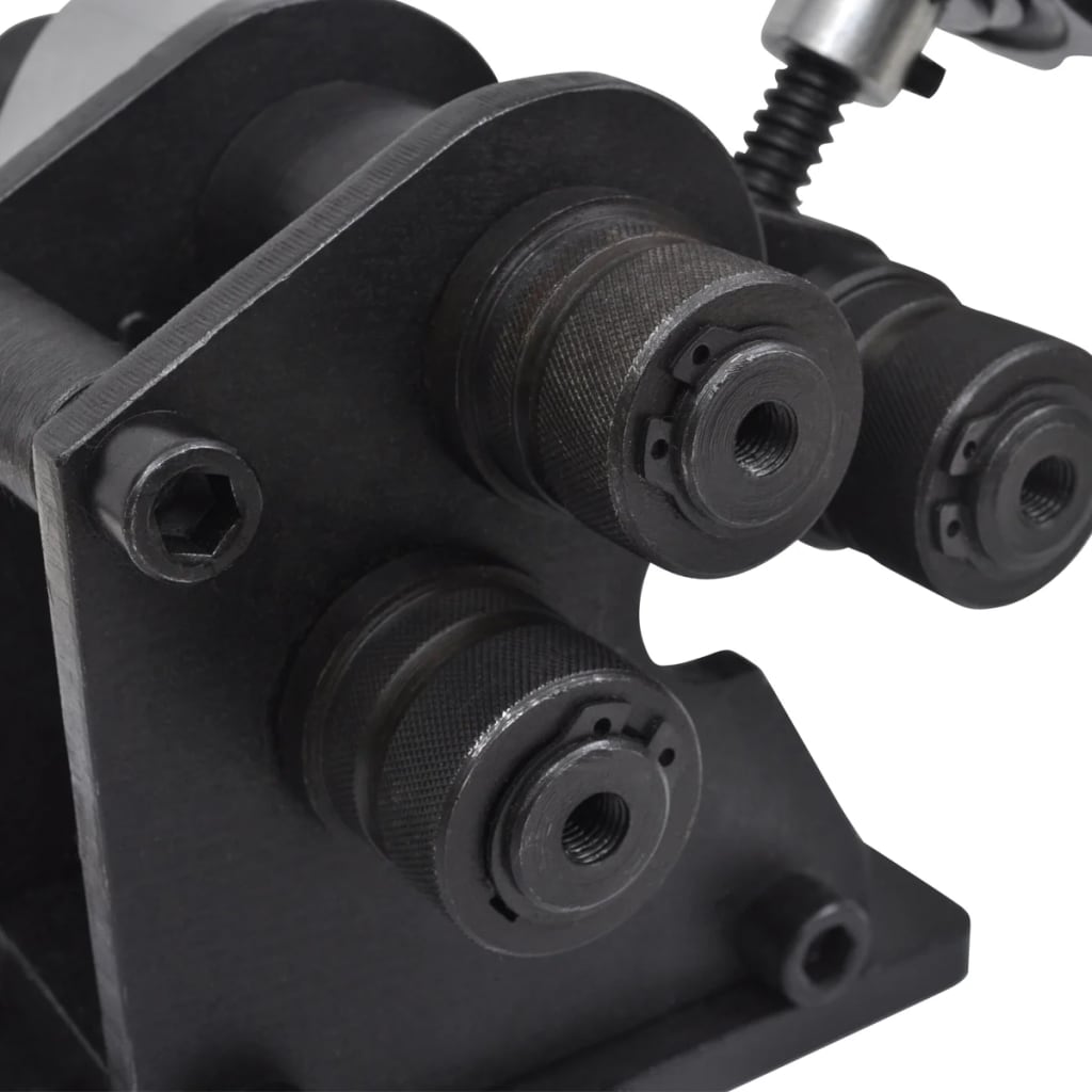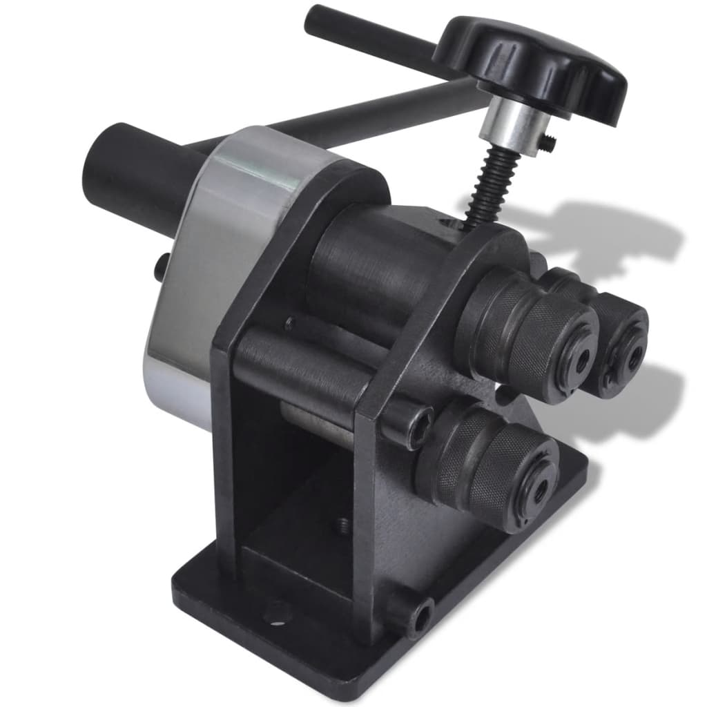 Esta máquina de dobragem cilindrica foi criada para a dobragem de barras chatas e sólidas.Graças ao seu design simples, mas prático, esta máquina é muito fácil de manusear, mesmo para um utilizador inexperiente. Como o parafuso grande tem uma cobertura de plástico, permite-lhe ajustar o rolo sem ferramentas.Ela poderá ser montada rápidamente e facilmente sobre uma bancada de trabalho. Esta máquina de dobragem cilindrica tem uma construção sólida e durável.