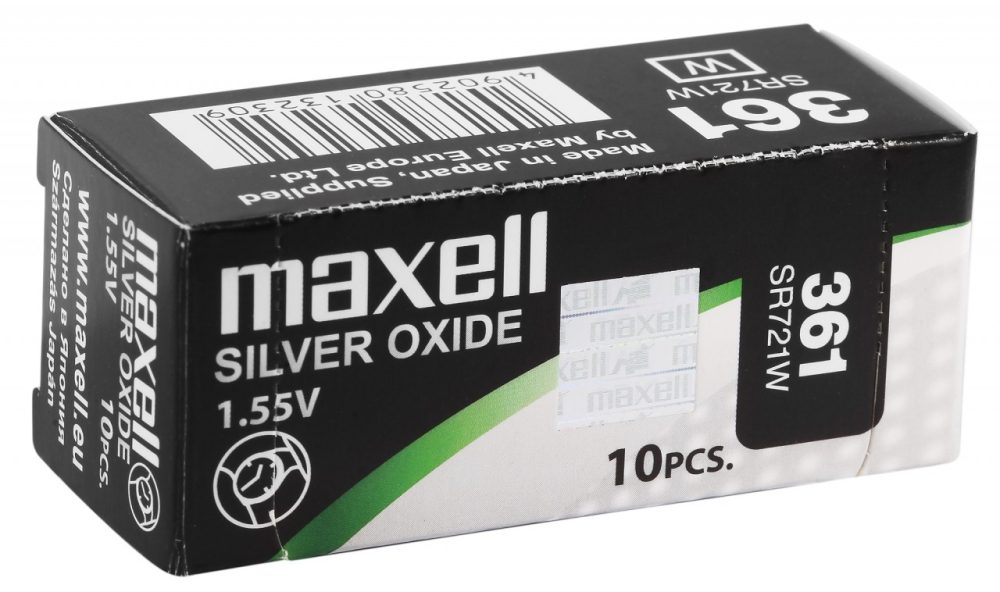 Pilhas de óxido de prata da marca Maxell. 0% mercúrio. Embalagem de 10 unidades.