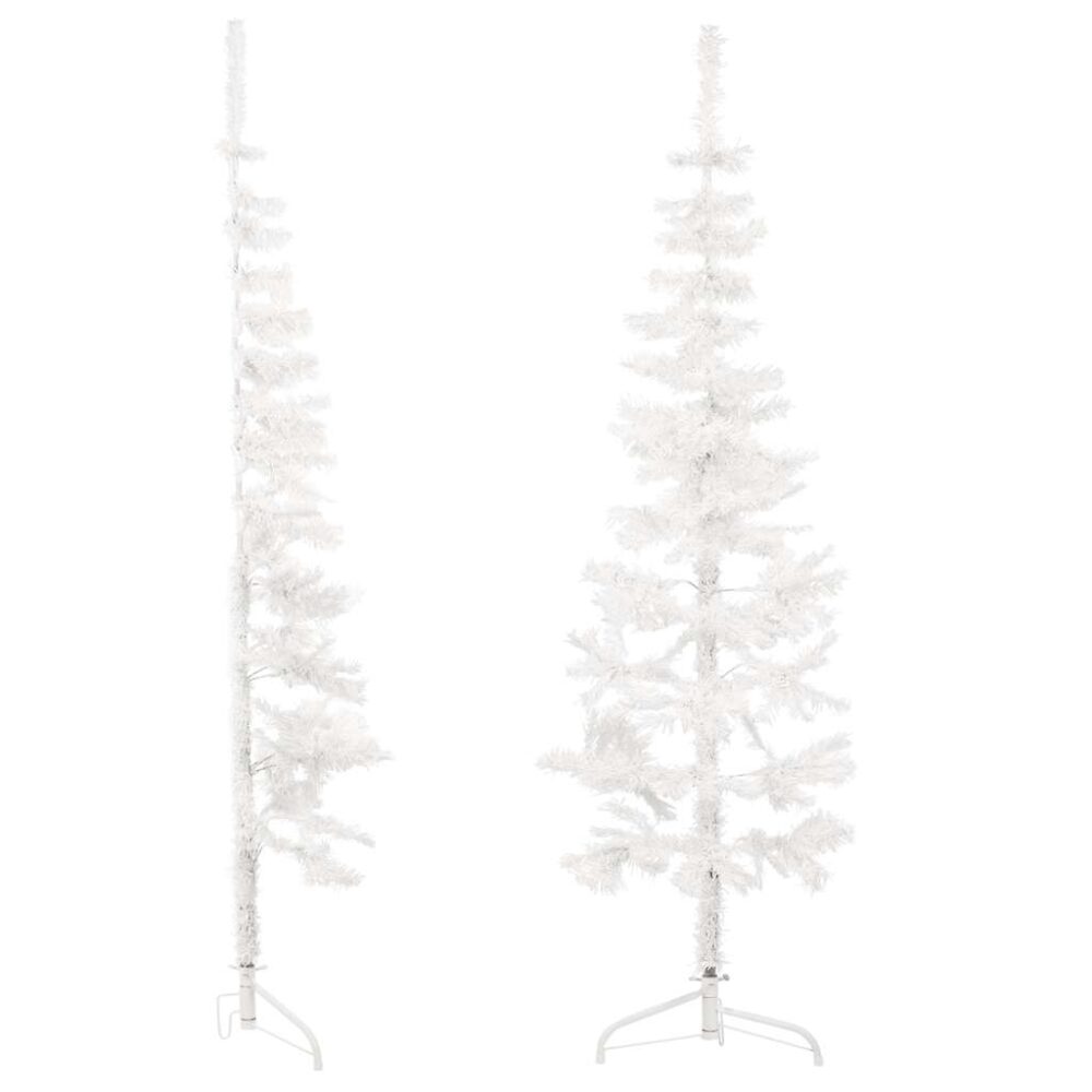 Meia árvore de Natal fina com suporte 180 cm branco - PORTES GRÁTIS