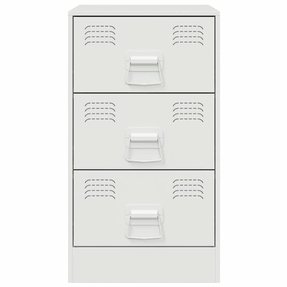 Esta mesa de cabeceira com um design elegante é um complemento intemporal para a decoração do seu interior. Material estável: a estrutura da mesa de cabeceira é feita de aço laminado a frio. O aço laminado a frio é um tipo de aço com baixo teor de carbono produzido através de um método de “laminagem a frio” e processado a temperaturas ambiente quase normais. O aço laminado a frio possui uma superfície mais lisa e uma maior resistência e precisão.Amplo espaço de arrumação: este móvel oferece um útil espaço de arrumação para manter as suas revistas, livros, controlos remotos e outros pequenos artigos bem organizados e ao seu alcance.Fácil de cuidar: a mesa é fácil de limpar com um pano húmido e requer menos manutenção.Puxadores práticos: a mesa de cabeceira inclui 3 puxadores, o que faz com que seja mais fácil abri-la e fechá-la, ao mesmo tempo que atribuem uma beleza adicional. Atenção:Para evitar que o produto tombe, deve utilizar o dispositivo de fixação na parede (não fornecido).