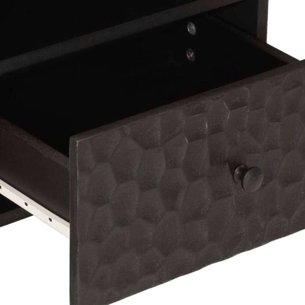 Esta mesa de cabeceira em madeira com um design elegante é um complemento intemporal para a decoração do seu interior. Madeira de mangueira maciça: a madeira de mangueira maciça é uma madeira de lei tropical utilizada para produzir móveis robustos. Os bonitos grãos da madeira tornam cada peça de mobiliário ligeiramente diferente das restantes. Feito em madeira de mangueira maciça, este armário é extremamente estável e durável.Amplo espaço de arrumação: a mesa de cabeceira foi concebida com 1 gaveta e 1 compartimento para manter as coisas organizadas e ao seu alcance.Tampo estável: o tampo deste móvel de apoio é perfeito para expor os seus artigos decorativos, molduras e vasos com plantas.Pernas robustas: as pernas de ferro contribuem para a robustez e estabilidade desta peça de mobília para quarto.