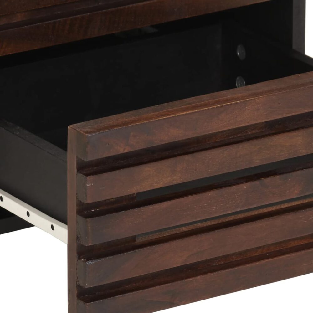 Esta mesa de cabeceira em madeira e com um estilo industrial será um complemento decorativo e prático para a sua decoração. Madeira de mangueira maciça: a madeira de mangueira maciça é uma madeira de lei tropical utilizada para produzir móveis robustos. Os bonitos grãos da madeira tornam cada peça de mobiliário ligeiramente diferente das restantes.Amplo espaço de arrumação: a mesa de cabeceira possui 2 gavetas que proporcionam um amplo espaço de arrumação para guardar e expor os seus livros, revistas e artigos decorativos melhorando ao mesmo tempo o seu espaço habitacional.Pernas estáveis e duráveis: este armário é suportado por pernas resistentes, garantindo estabilidade, segurança e firmeza. Dica útil:A cor e os grãos variam de peça para peça, tornando cada uma única. A entrega é aleatória, assegurando a exclusividade e a individualidade do seu produto.