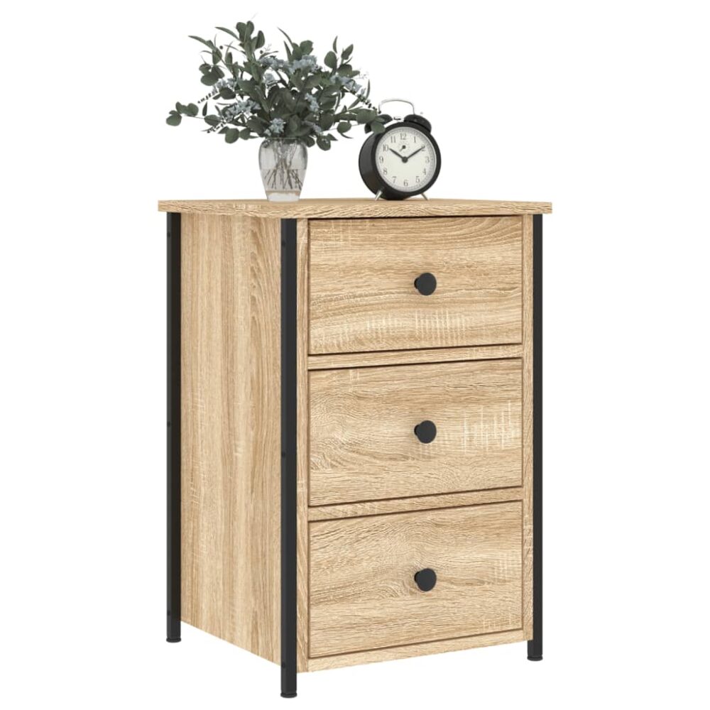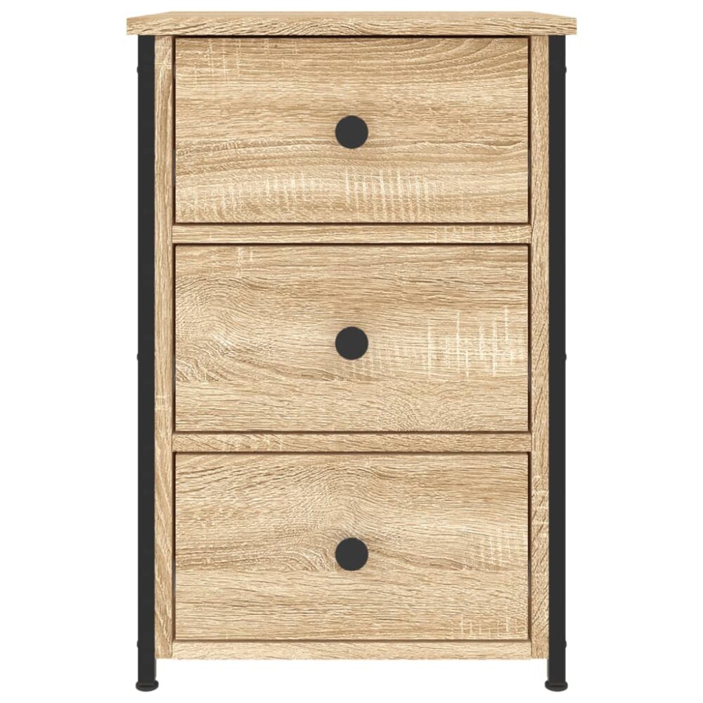 Esta mesa de cabeceira com um estilo industrial será um complemento intemporal para a decoração do seu interior. Material durável: os derivados de madeira possuem uma qualidade excecional e oferecem uma superfície suave bem como força, estabilidade e resistência à humidade.Estrutura robusta: a estrutura de ferro da mesa de cabeceira assegura robustez e estabilidade.Amplo espaço de arrumação: concebida com 3 gavetas, a mesa de apoio oferece um amplo espaço de arrumação para manter os seus vários artigos essenciais do dia-a-dia bem organizados e fáceis de alcançar.Pés ajustáveis: o móvel de apoio está equipado com 4 pés ajustáveis que podem proteger o seu chão de riscos e mantê-lo estável em pisos irregulares.Função de exposição: pode colocar as suas fotografias favoritas, decorações ou flores no topo da mesa de cabeceira para enriquecer a sua vida. Atenção:Para evitar que o produto se vire, deve utilizar o dispositivo de fixação na parede fornecido.