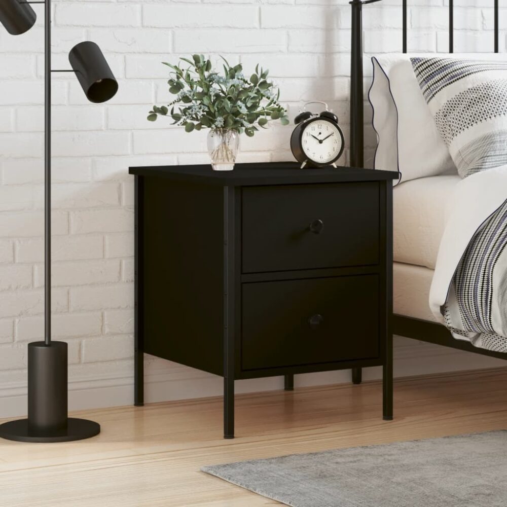 Esta mesa de cabeceira com um estilo industrial será um complemento intemporal para a decoração do seu interior. Material durável: os derivados de madeira possuem uma qualidade excecional e oferecem uma superfície suave bem como força, estabilidade e resistência à humidade.Estrutura robusta: a estrutura de ferro da mesa de cabeceira assegura robustez e estabilidade.Amplo espaço de arrumação: concebida com 2 gavetas, a mesa de apoio oferece um amplo espaço de arrumação para manter os seus vários artigos essenciais do dia-a-dia bem organizados e fáceis de alcançar.Pés ajustáveis: o móvel de apoio está equipado com 4 pés ajustáveis que podem proteger o seu chão de riscos e mantê-lo estável em pisos irregulares.Função de exposição: pode colocar as suas fotografias favoritas, decorações ou flores no topo da mesa de cabeceira para enriquecer a sua vida. Atenção:Para evitar que o produto se vire, deve utilizar o dispositivo de fixação na parede fornecido.