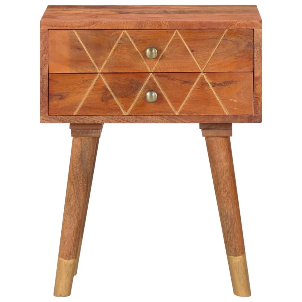 Dê um toque de charme rústico ao seu interior com a nossa elegante mesa de cabeceira em madeira! Será um complemento intemporal para o seu espaço habitacional. Feita em madeira de mangueira maciça, a mesa de cabeceira recebeu um bonito acabamento por polimento e envernizamento, o que lhe atribuiu um aspeto requintado. A madeira de mangueira é uma madeira densa e robusta, com bonitas estrias e contornos castanhos ou dourados na sua superfície. As 2 gavetas fornecem espaço de arrumação para manter artigos mais pequenos organizados e ao seu alcance. Nota importante: a artesania requintada e os bonitos grãos da madeira de mangueira maciça tornam cada peça de mobiliário única e ligeiramente diferente das restantes. A entrega é aleatória. É fácil de montar.