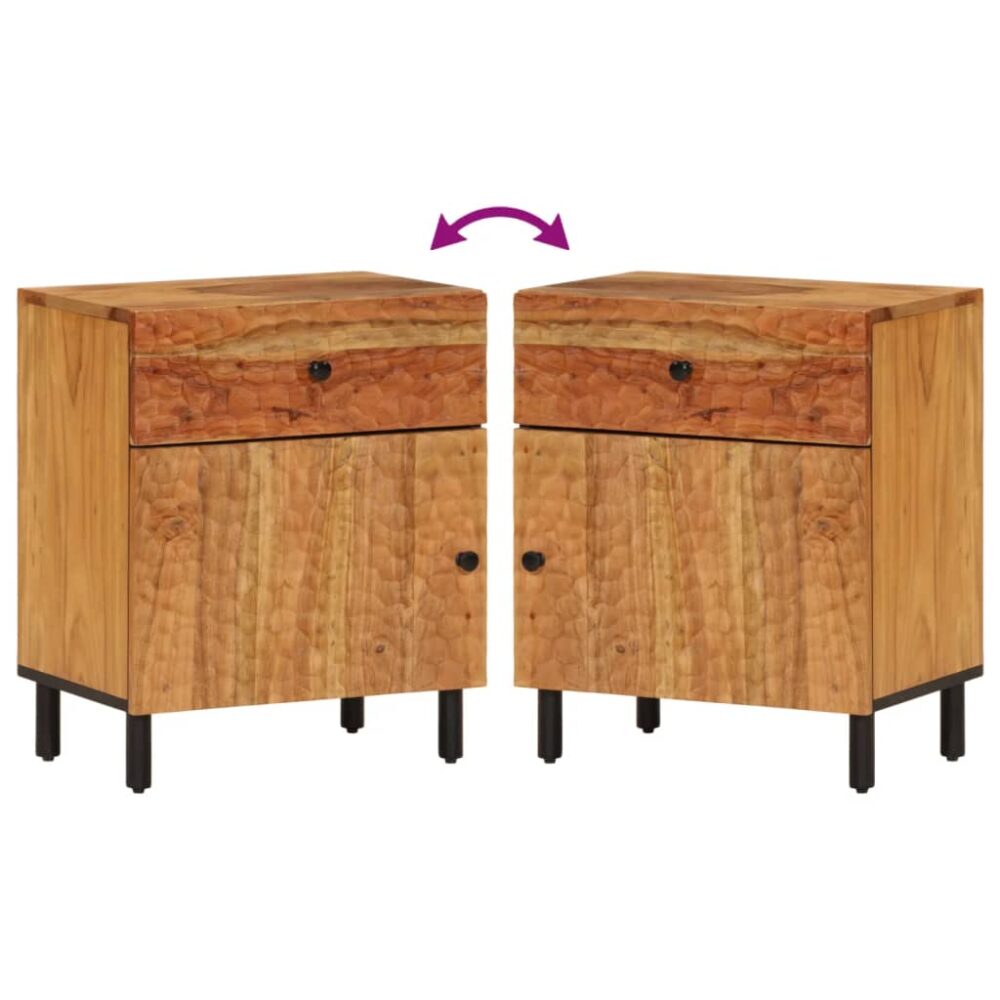 Esta mesa de cabeceira em madeira com um design elegante é um complemento intemporal para a decoração do seu interior. Madeira de acácia maciça: a madeira de acácia maciça é um bonito material natural. A madeira de acácia é uma madeira de lei, que é densa, robusta e durável.Amplo espaço de arrumação: a mesa de cabeceira foi concebida com 1 gaveta e 1 porta para manter as coisas organizadas e ao seu alcance.Tampo estável: o tampo deste móvel de apoio é perfeito para expor os seus artigos decorativos, molduras e vasos com plantas.Pernas robustas: as pernas de ferro contribuem para a robustez e estabilidade desta peça de mobília para quarto. Atenção:Para evitar que tombe, este produto deve ser utilizado com o dispositivo de fixação na parede fornecido.