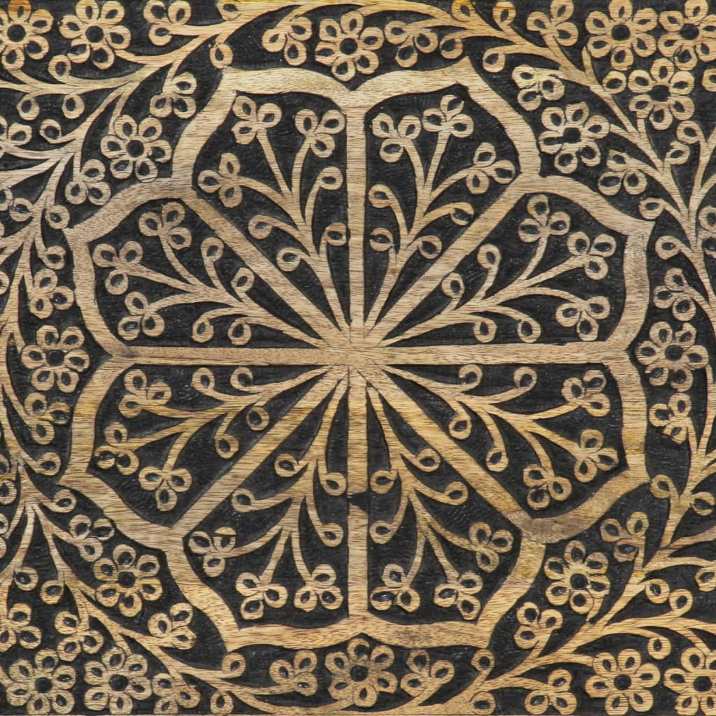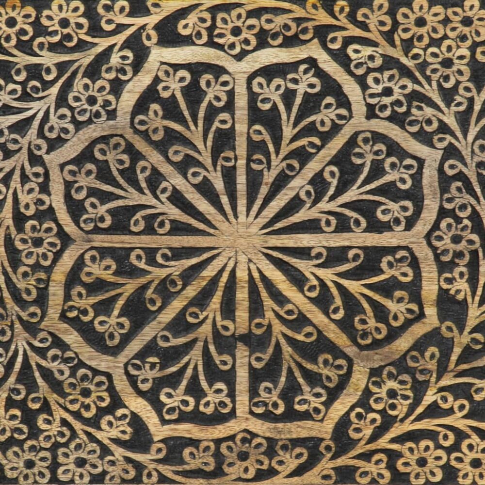 Esta mesa de cabeceira em madeira com um design elegante é um complemento intemporal para a decoração do seu interior. Madeira de mangueira maciça: a madeira de mangueira maciça é uma madeira de lei tropical utilizada para produzir móveis robustos. Os bonitos grãos da madeira tornam cada peça de mobiliário ligeiramente diferente das restantes. Feito em madeira de mangueira maciça, este armário é extremamente estável e durável.Amplo espaço de arrumação: a mesa de cabeceira foi concebida com 1 gaveta e 1 porta para manter as coisas organizadas e ao seu alcance.Tampo estável: o tampo deste móvel de apoio é perfeito para expor os seus artigos decorativos, molduras e vasos com plantas.Pernas robustas: as pernas de ferro contribuem para a robustez e estabilidade desta peça de mobília para quarto.Estilo retro: esta mesa de cabeceira com padrões florais esculpidos à mão traz o luxo do estilo retro para o seu interior, sendo o ponto focal da sua divisão. Útil saber:A cor e os grãos variam de peça para peça, tornando cada uma única. A entrega é aleatória, assegurando a exclusividade e a individualidade do seu produto. Atenção:Para evitar que tombe, este produto deve ser utilizado com o dispositivo de fixação na parede fornecido.