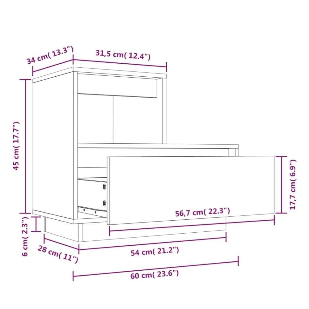 Esta mesa de cabeceira em madeira com um design elegante é um complemento intemporal para a decoração do seu interior. Material de qualidade: a madeira de pinho maciça é um bonito material natural. A madeira de pinho possui um grão reto e os nós dão ao material o seu aspeto rústico.Amplo espaço de arrumação: equipada com 1 gaveta e 1 compartimento, a mesa de cabeceira oferece um útil espaço de arrumação para manter as suas revistas, livros, controlos remotos e outros pequenos artigos bem organizados e ao seu alcance.Tampo estável: o tampo estável pode ser utilizado para colocar artigos decorativos tais como molduras e vasos.Duas opções de montagem: o lado alto da mesa de cabeceira pode ser instalado do lado esquerdo ou direito, de acordo com as suas necessidades. Atenção:Para evitar que o produto se vire, deve utilizar o dispositivo de fixação na parede fornecido.