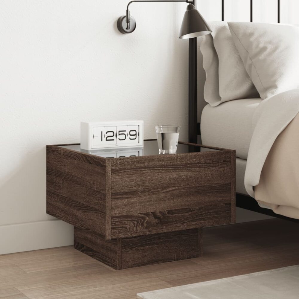 Mesa de cabeceira c/ LED Infinity 40x40x30 cm carvalho castanho - PORTES GRÁTIS