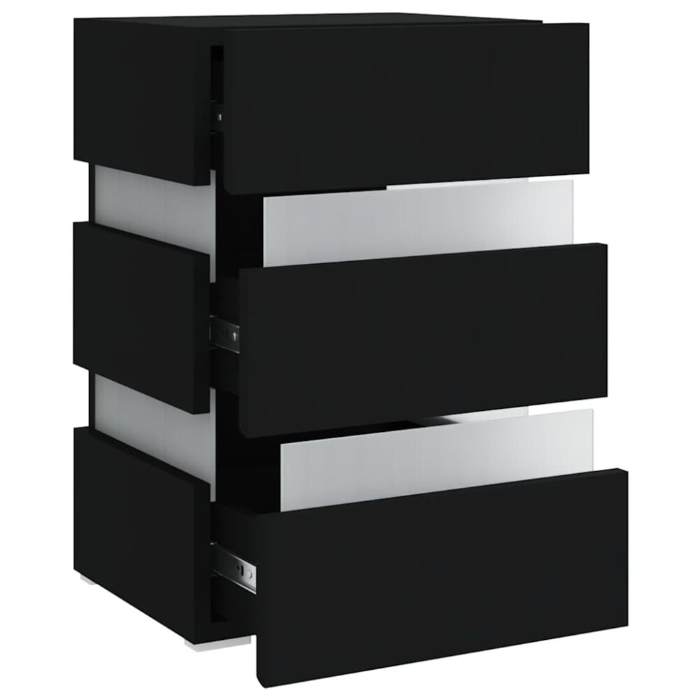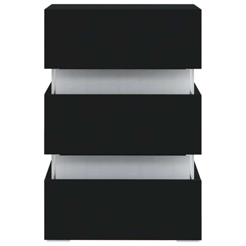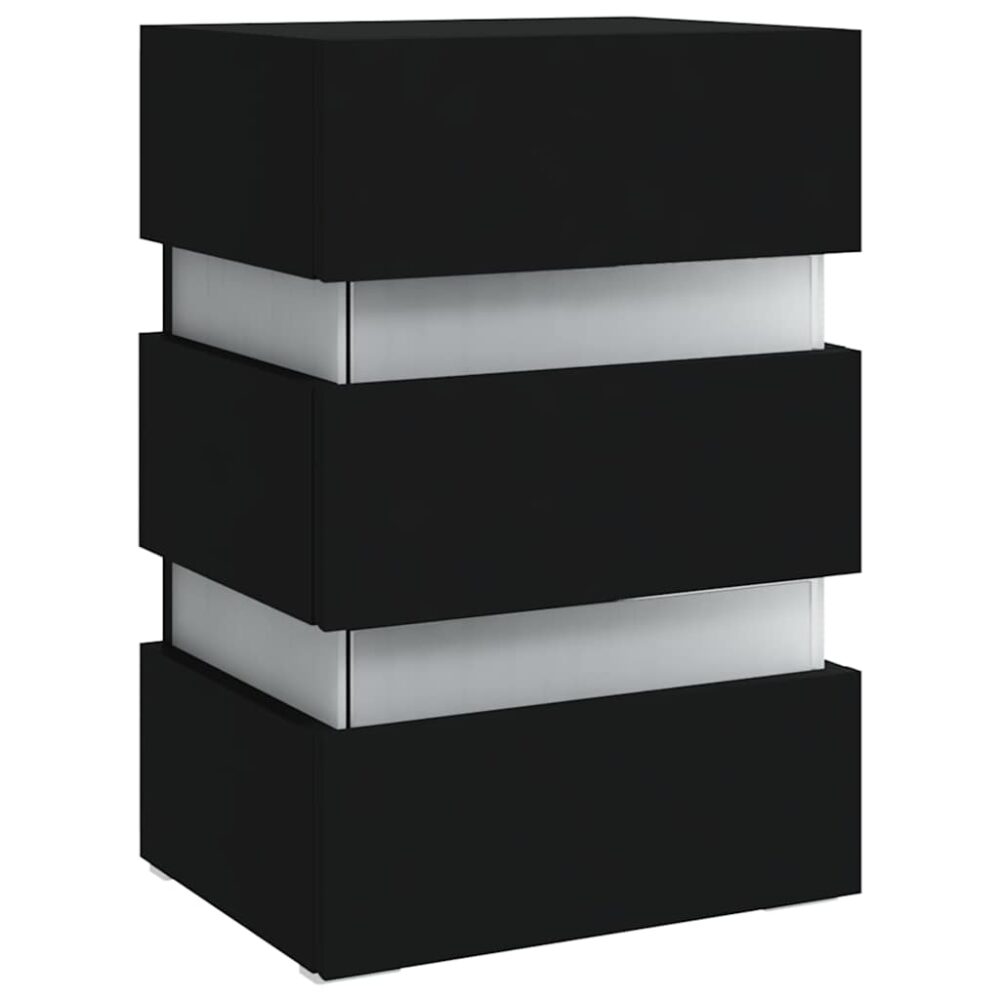 Mesa de cabeceira c/ luzes LED derivados de madeira preto - PORTES GRÁTIS