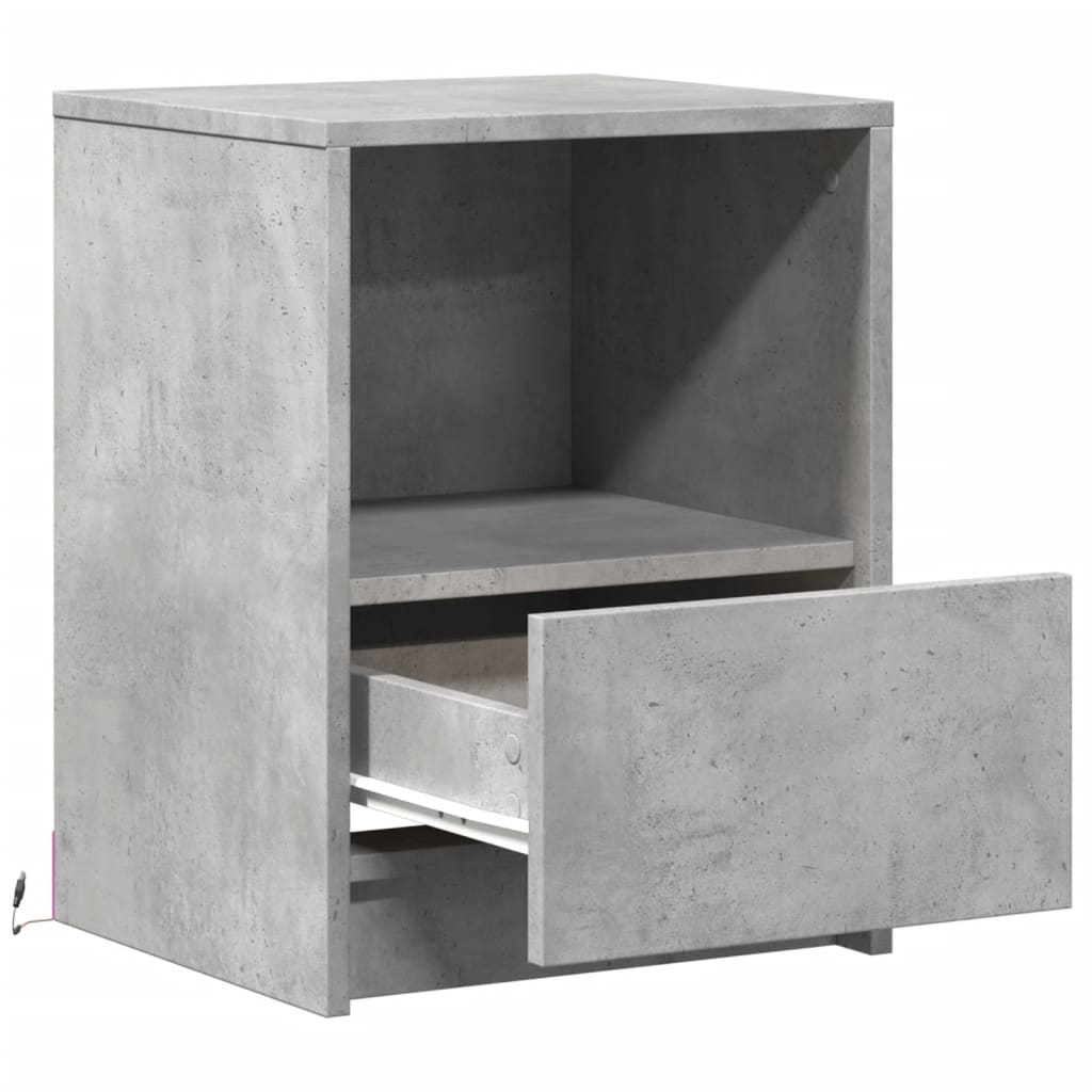 Mesa de cabeceira c/ luzes LED derivados madeira cinza cimento - PORTES GRÁTIS
