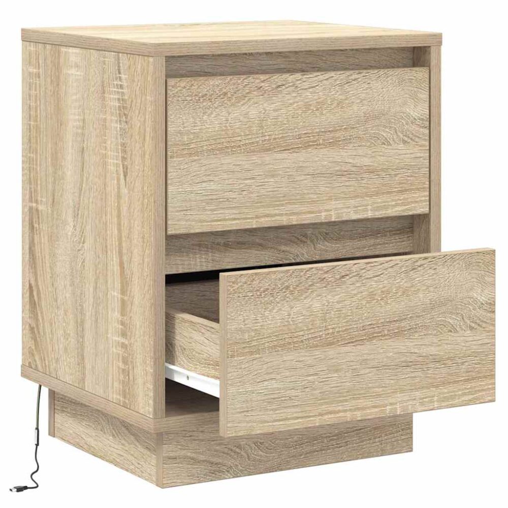 Mesa de Cabeceira com Luzes LED Carvalho Sonoma 39x34,5x50 cm - PORTES GRÁTIS