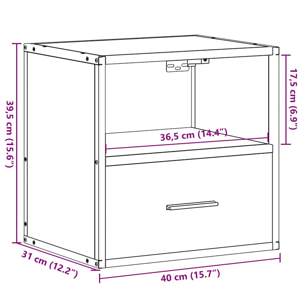 Mesa de cabeceira de parede 40x31x39,5 cm carvalho fumado - PORTES GRÁTIS