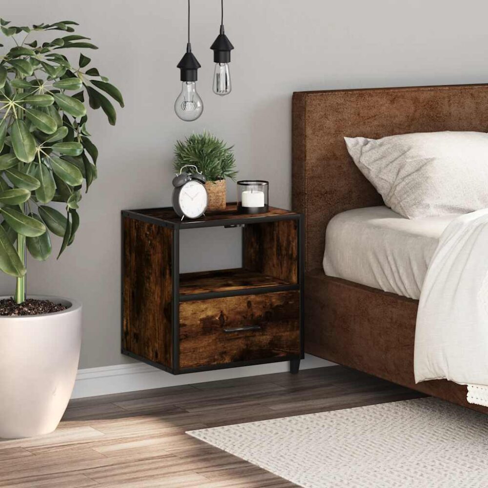 Mesa de cabeceira de parede 40x31x39,5 cm carvalho fumado - PORTES GRÁTIS