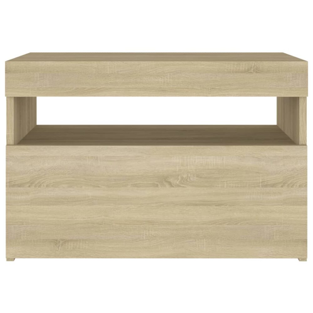 Com um design moderno e prático, esta mesa de cabeceira com luzes LED torna-se definitivamente um ponto focal na sua divisão. A construção sólida da mesa de cabeceira torna-a altamente durável. Dispõe de um amplo espaço para manter as suas revistas, livros, controlos remotos e outros artigos pequenos bem organizados e ao alcance. Esta mesinha de cabeceira apresenta luzes RGB LED, que possuem menus diferentes para mudar a cor das luzes e deixar que elas se ajustem automaticamente de forma diferente. As luzes LED destacam o aspeto moderno e contribuem para uma aparência elegante. Esta mesa de cabeceira é fácil de limpar com um pano húmido. Nota: o produto possui um conetor USB, mas a fonte de alimentação USB de 5 V certificada não está incluída.