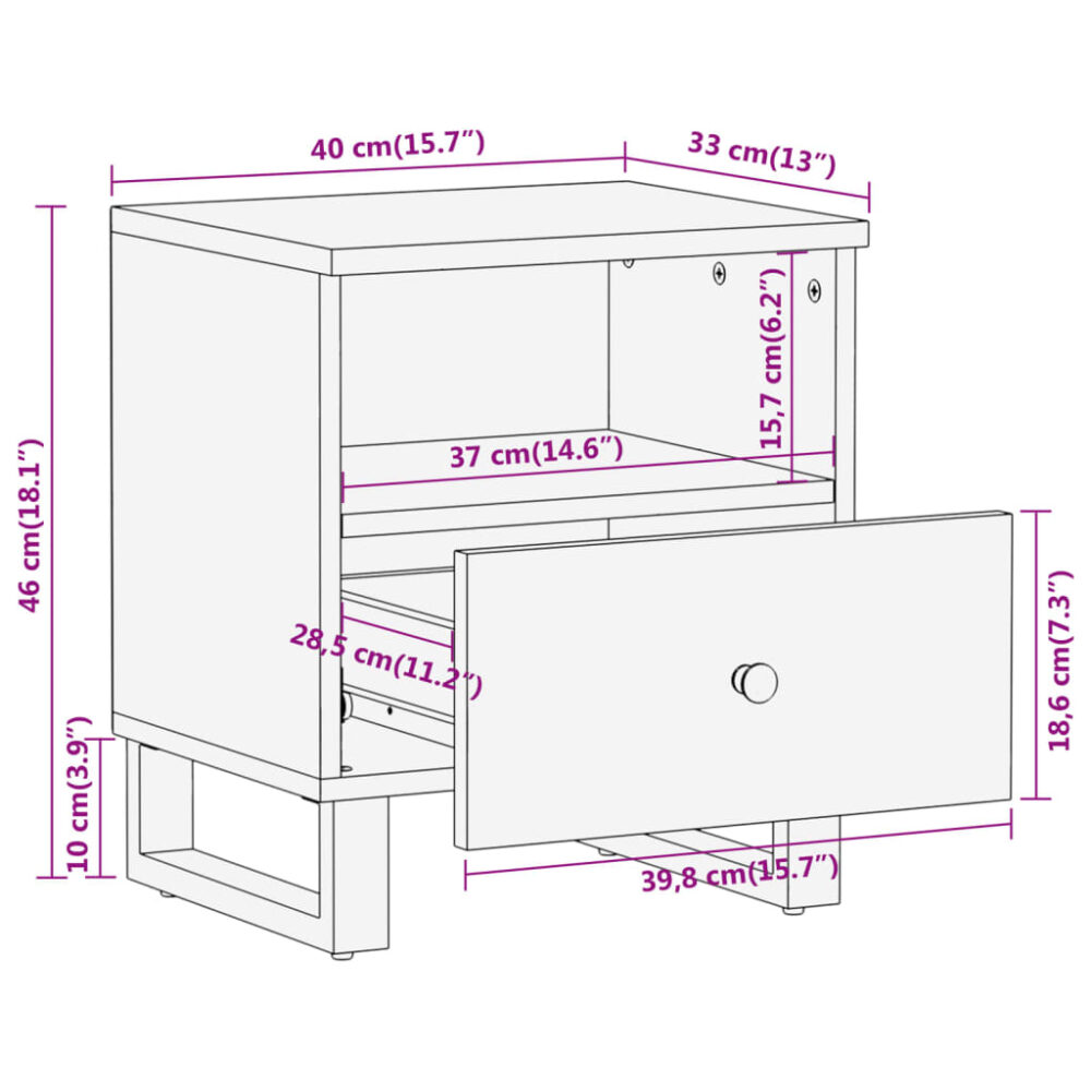 Esta mesa de cabeceira em madeira com um design elegante é um complemento intemporal para a decoração do seu interior. Madeira de mangueira maciça: a madeira de mangueira maciça é uma madeira de lei tropical utilizada para produzir móveis robustos. Os bonitos grãos da madeira tornam cada peça de mobiliário ligeiramente diferente das restantes. Feito em madeira de mangueira maciça, este armário é extremamente estável e durável.Amplo espaço de arrumação: a mesa de cabeceira foi concebida com 1 gaveta e 1 compartimento para manter as coisas organizadas e ao seu alcance.Tampo estável: o tampo deste móvel de apoio é perfeito para expor os seus artigos decorativos, molduras e vasos com plantas.Pernas robustas: as pernas de ferro contribuem para a robustez e estabilidade desta peça de mobília para quarto.