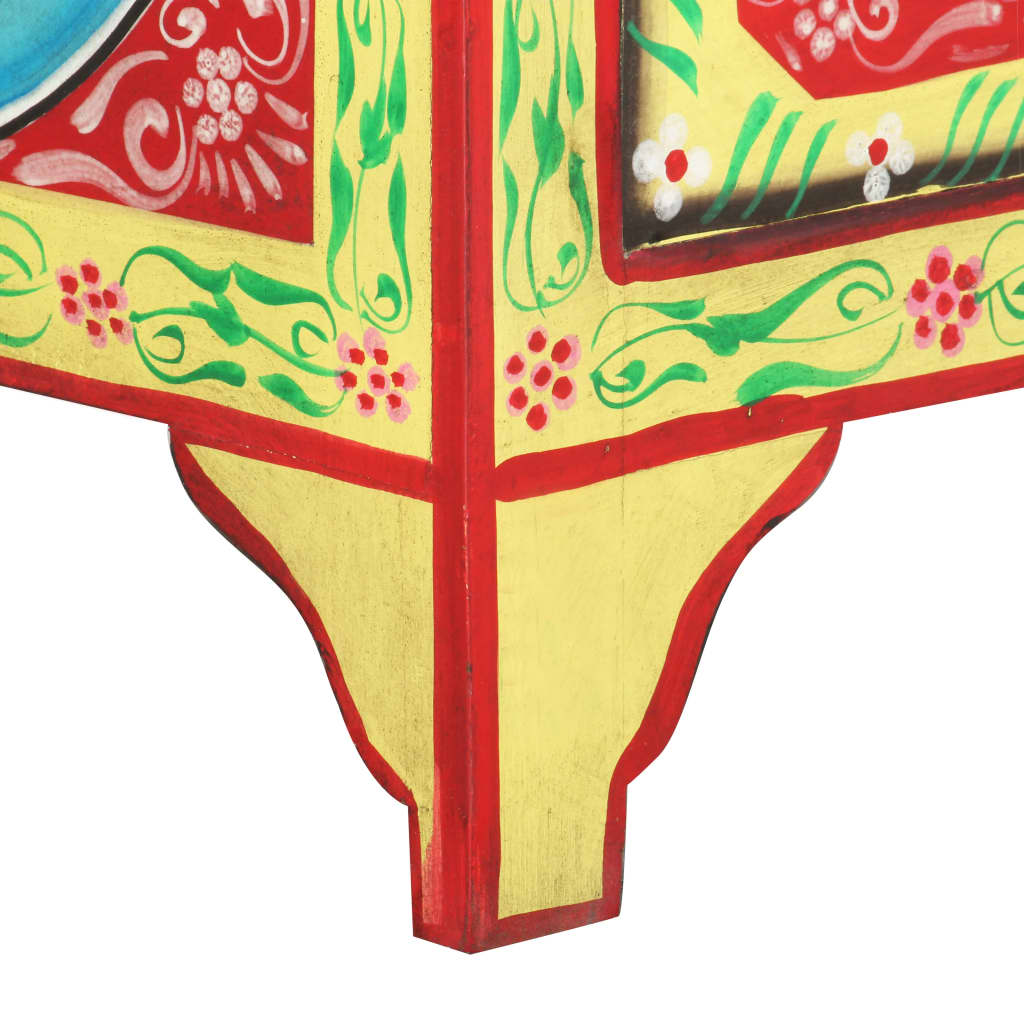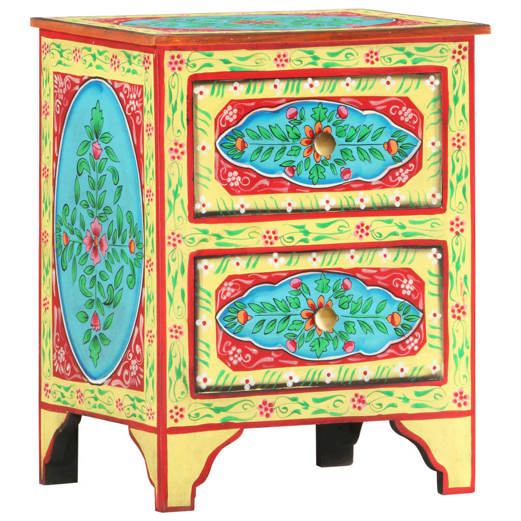 Esta bonita mesa de cabeceira foi adornada com detalhes decorativos ricos e pintados à mão. Será um complemento atraente para o seu quarto graças ao seu design colorido. A mesa de cabeceira foi feita com madeira de mangueira e MDF, sendo durável e bonita, e a artesania contribui para o seu estilo retro espetacular. Cada etapa do processo é realizada com o maior cuidado, quer seja o polimento, a pintura ou o envernizamento. A mesa de cabeceira apresenta grandes detalhes decorativos pintados à mão, o que cria um efeito quente e rico. Esta mesa de cabeceira possui um tampo resistente, no qual pode colocar um candeeiro, despertador ou qualquer outra coisa que possa precisar de ter perto da sua cama. As gavetas oferecem um amplo espaço para manter todos os tipos de artigos mais pequenos organizados e ao seu alcance. O artigo já está montado. Não requer qualquer montagem.