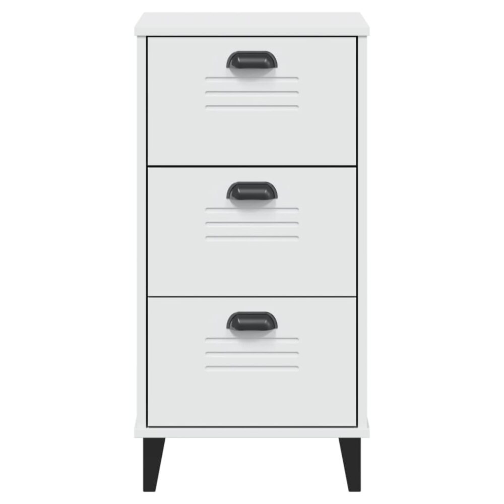 Com um design elegante, esta mesa de cabeceira adapta-se facilmente ao seu quarto ou sala de estar e acrescenta um charme industrial ao seu interior. Material durável: os derivados de madeira possuem uma qualidade excecional e oferecem uma superfície suave bem como força, estabilidade e resistência à humidade.Amplo espaço de arrumação: a mesa de cabeceira oferece um amplo espaço de arrumação para manter os seus artigos essenciais bem organizados e ao seu alcance.Fácil de cuidar: a mesa de apoio é fácil de limpar com um pano húmido e requer menos manutenção.Puxador prático: a mesa de cabeceira inclui puxadores, o que faz com que seja mais fácil abri-la e fechá-la, ao mesmo tempo que atribuem uma beleza adicional. Atenção:Para evitar que tombe, este produto deve ser utilizado com o dispositivo de fixação na parede fornecido.