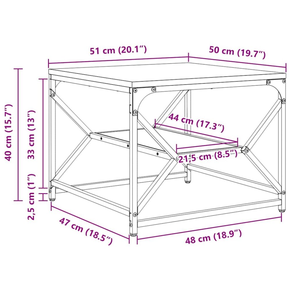 A Mesa de Caf em Carvalho Fumado Industrial a combinao ideal de estilo e funcionalidade para lares modernos. Feita em carvalho forte, tem uma superfcie elegante que se adapta bem decorao. Esta mesa perfeita para pausas para caf e se torna um ponto de encontro para famlia e amigos na sala de estar. Com medidas de 51 x 50 x 40 cm, encaixa-se em diferentes ambientes sem roubar muito espao. A estrutura em metal preto adiciona um contraste bonito, oferecendo uma base slida. tima para todas as idades, servindo caf ou lanche com facilidade, tornando-se essencial em qualquer casa.