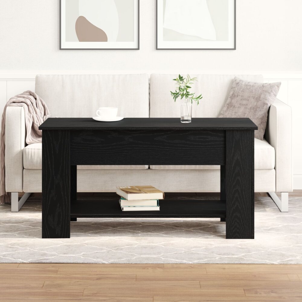 Mesa de Café de Carvalho Preto - 101x49x52 cm Feita de Madeira Reforçada - PORTES GRÁTIS