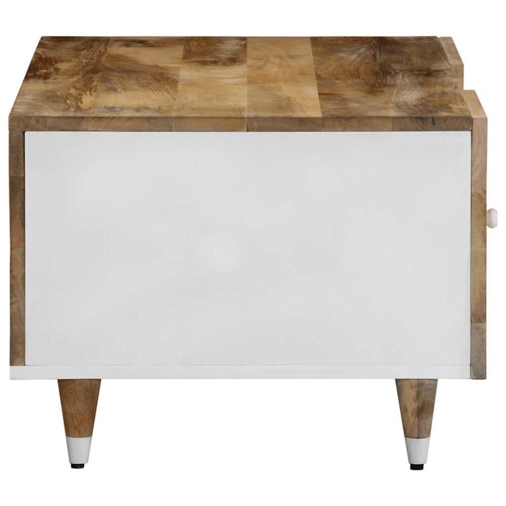 Relaxe e desfrute do tempo com a sua família e amigos à volta desta mesa de centro! Material robusto e estável: a madeira de mangueira maciça, uma robusta madeira tropical, é altamente favorecida no fabrico de móveis dada a sua excecional durabilidade e resistência. Os bonitos grãos da madeira tornam cada peça de mobiliário ligeiramente diferente das restantes.Amplo espaço de arrumação: esta mesa de apoio proporciona um amplo espaço de arrumação para manter as suas revistas, livros, DVD, controlos remotos e outros pequenos artigos bem organizados e ao alcance.Com pernas: As pernas elevadas facilitam a limpeza por baixo da mesa do sofá, mantendo uma aparência arrumada e garantindo um melhor fluxo de ar em torno dos equipamentos eletrónicos.Várias aplicações: Esta…