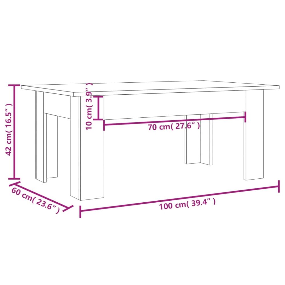 Adicione um toque moderno à sua decoração interior com esta elegante mesa de centro. Material durável: os derivados de madeira possuem uma qualidade excecional e oferecem uma superfície suave bem como força, estabilidade e resistência à humidade.Tampo estável: o tampo largo é ideal para colocar aperitivos, bebidas, revistas, vasos ou outras necessidades.Excelente complemento: esta mesa de centro moderna com linhas lisas será um excelente complemento para o seu espaço habitacional. Nota:Cada produto é fornecido com um manual na caixa para facilitar a montagem.