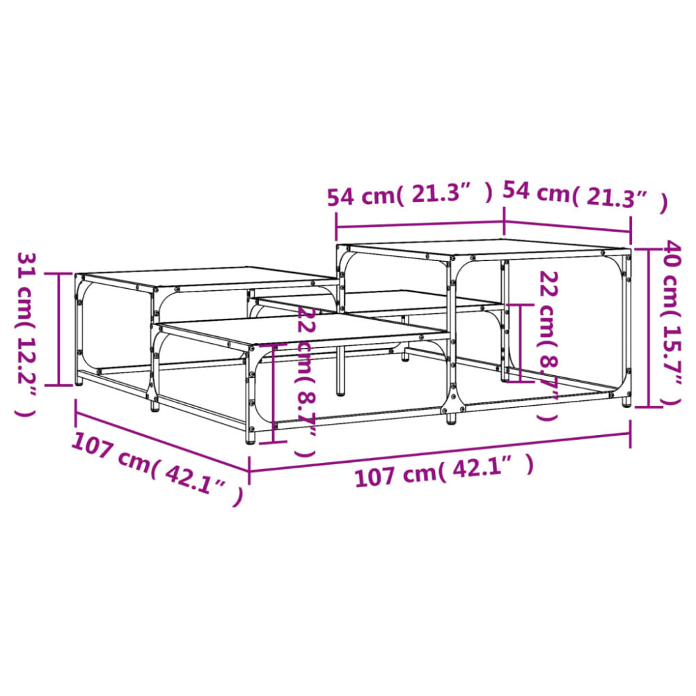 Decore a sua sala de estar com esta mesa de centro elegante que combina facilmente com mobília de qualquer estilo na sua casa. Material durável: os derivados de madeira são de qualidade excecional com uma superfície suave e apresentam ainda força, estabilidade e resistência à humidade. Feita de derivados de madeira, a mesa de apoio ao sofá é fácil de limpar.Função de exposição: esta mesa de centro quadrada possui tampos de alturas diferentes, o que garante que cada andar possa conter a sua própria decoração.Tampo resistente: o tampo robusto da mesa de apoio ao sofá é ideal para colocar as suas bebidas ou quaisquer outros artigos que precise de ter ao seu alcance.Estrutura de metal: a estrutura de metal acrescenta um estilo industrial no seu interior, enquanto assegura durabilidade e estabilidade.Pés ajustáveis: os pés ajustáveis com almofadas de plástico mantêm a mesa de centro equilibrada em superfícies irregulares e aumentam a estabilidade.