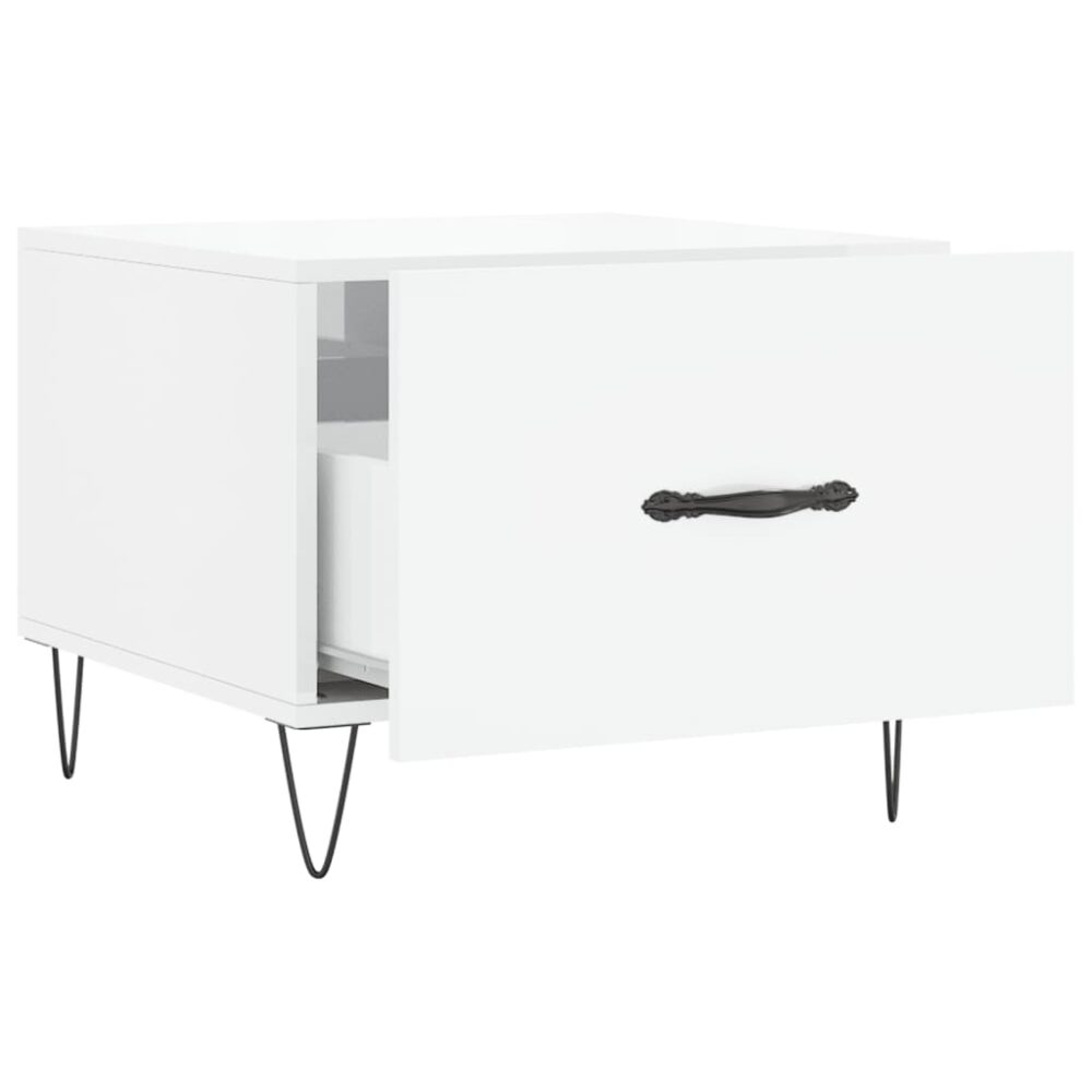 Mesa de centro 50x50x40 cm madeira processada branco brilhante - PORTES GRÁTIS