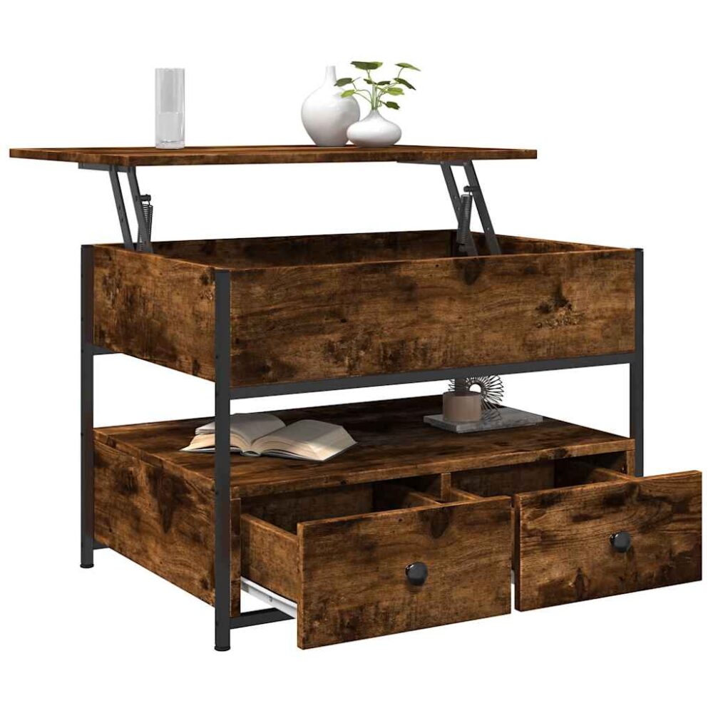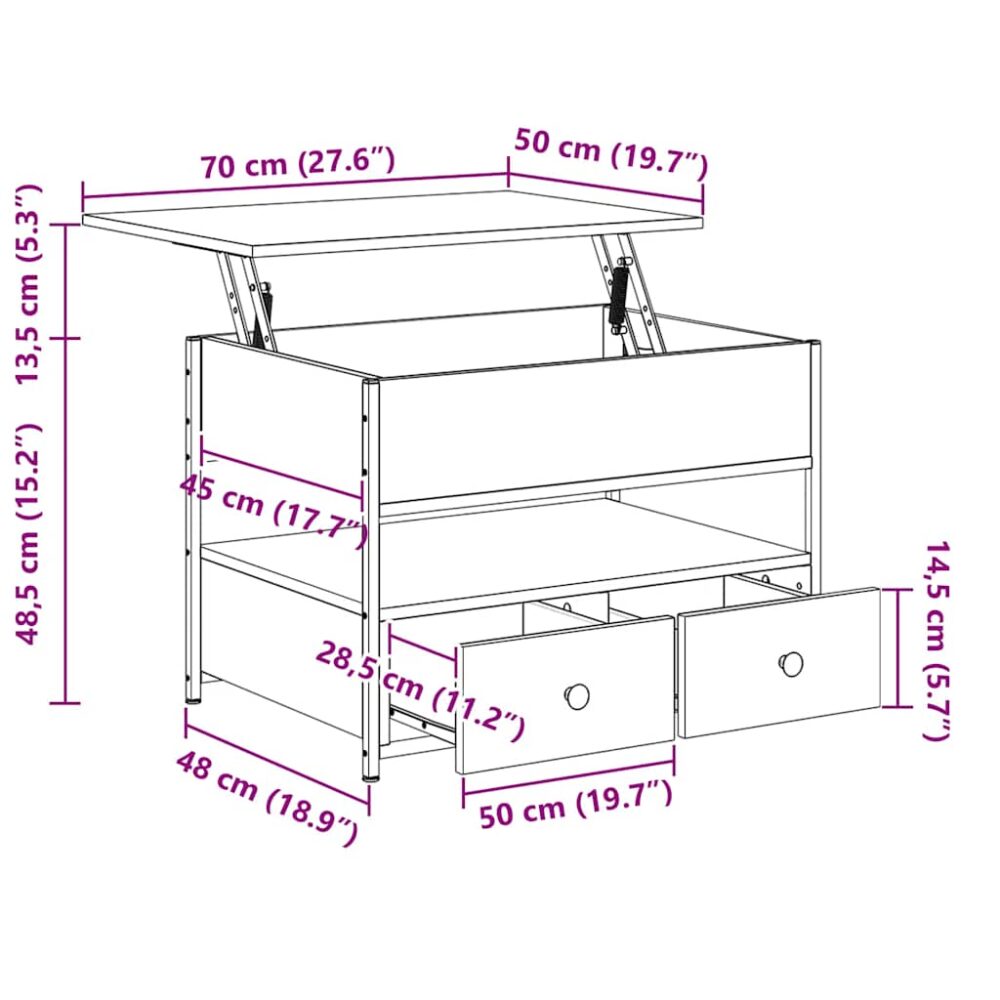 Dê um toque de elegância à sua sala de estar com esta moderna mesa de centro. Material durável: os derivados de madeira possuem uma qualidade excecional e oferecem uma superfície suave bem como força, estabilidade e resistência à humidade.Design elevatório: o tampo desta mesa de apoio ao sofá pode ser levantado suavemente até uma altura confortável, convertendo a mesa num espaço onde pode trabalhar ou jantar.Amplo espaço de arrumação: a mesa para sala de estar com 2 gavetas possui um amplo espaço de arrumação por baixo do tampo que serve como compartimento oculto, no qual pode guardar os seus artigos frequentemente utilizados, protegendo-os do pó.Pés ajustáveis: a mesa de centro está equipada com 4 pés ajustáveis que podem proteger o seu chão de riscos e mantê-la estável em pisos irregulares.Estrutura robusta: a estrutura de metal desta mesa de apoio ao sofá assegura resistência e estabilidade.