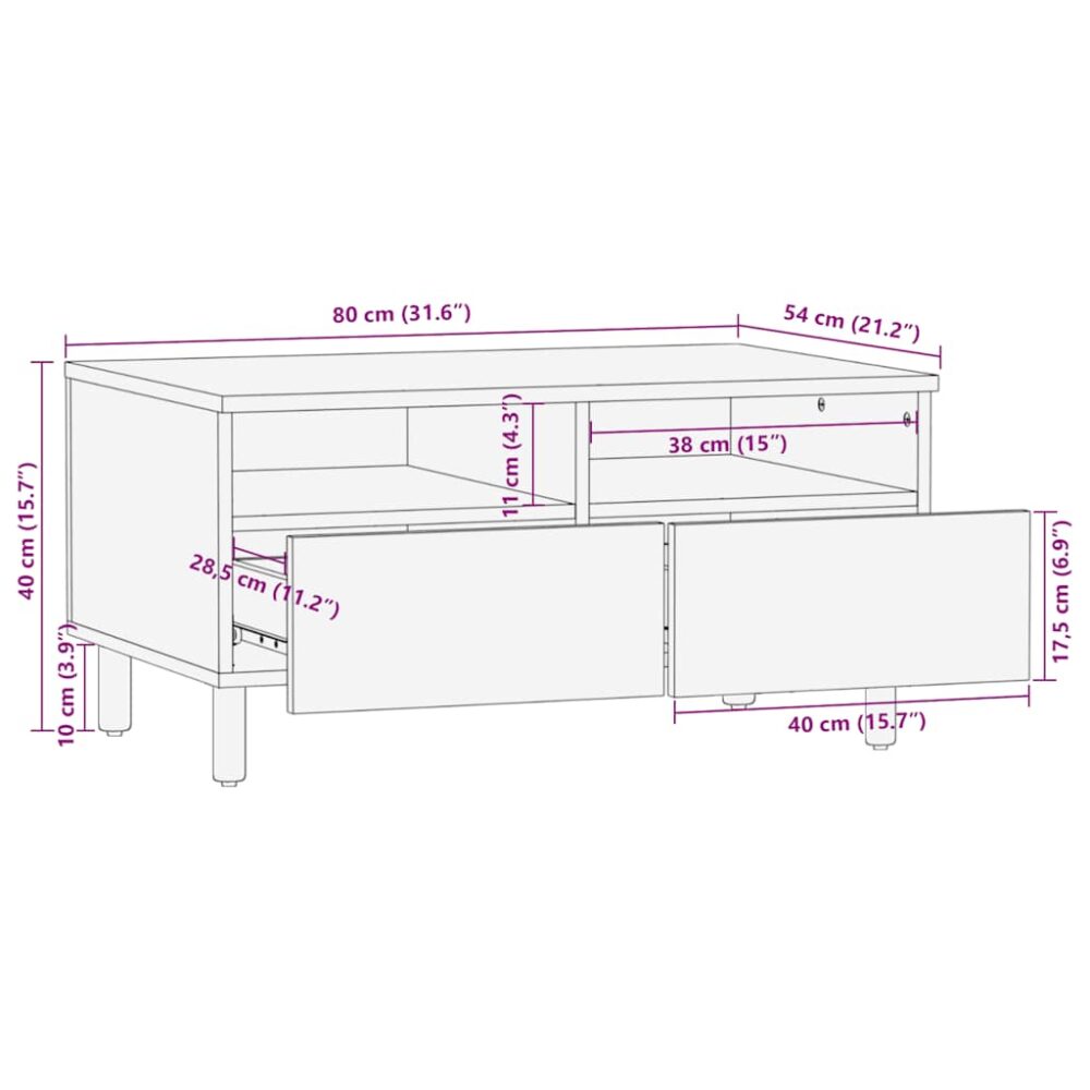 Mesa de centro 80x54x40 cm madeira de mangueira maciça castanho - PORTES GRÁTIS