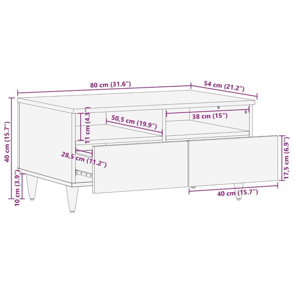 Mesa de centro 80x54x40 cm madeira de mangueira maciça - PORTES GRÁTIS