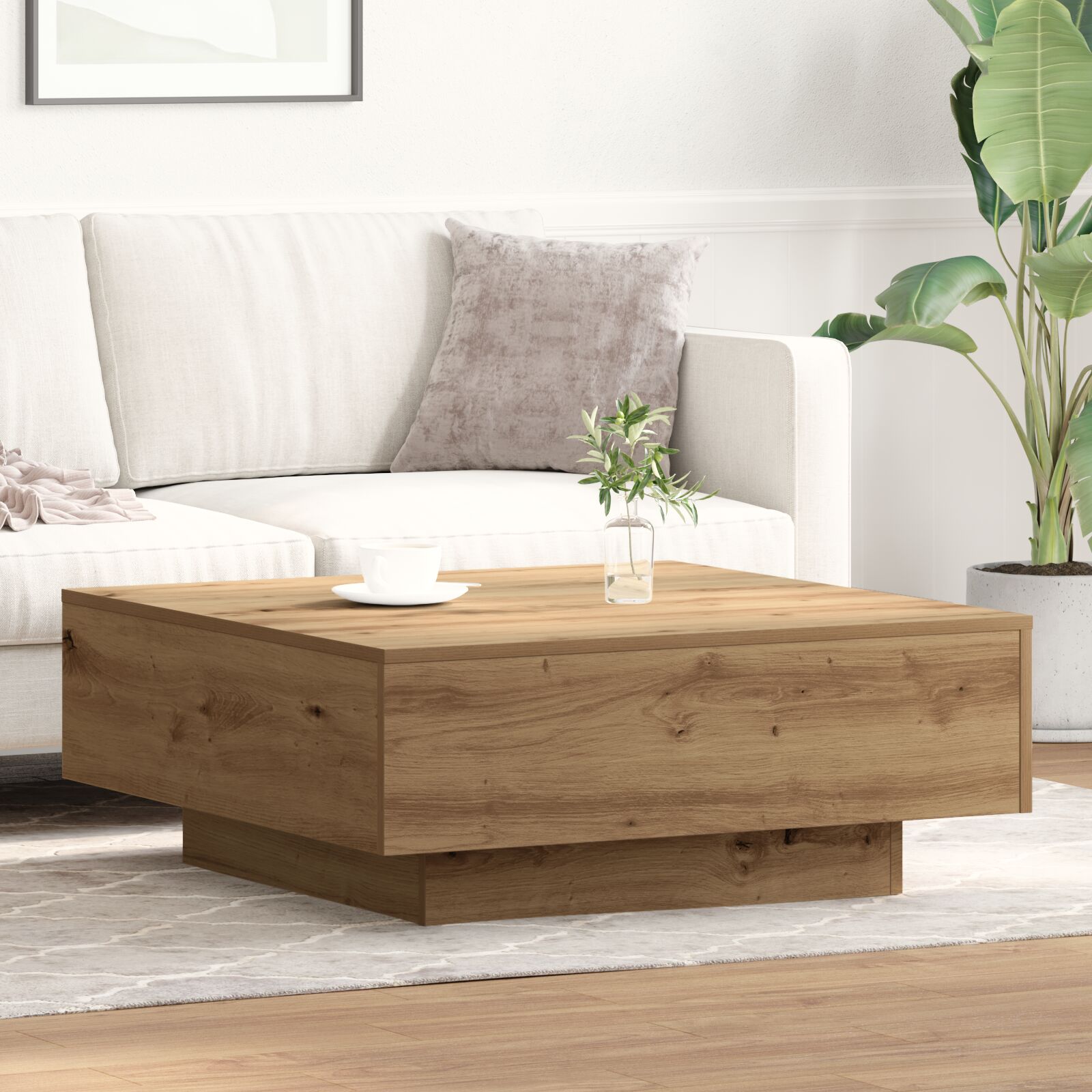- Charme Rústico: Esta mesa exibe um design rústico clássico que se adapta facilmente a diversos estilos de interiores. A sua superfície suave e a textura de carvalho natural trazem calor e conforto, elevando a vibe geral da sala de estar.