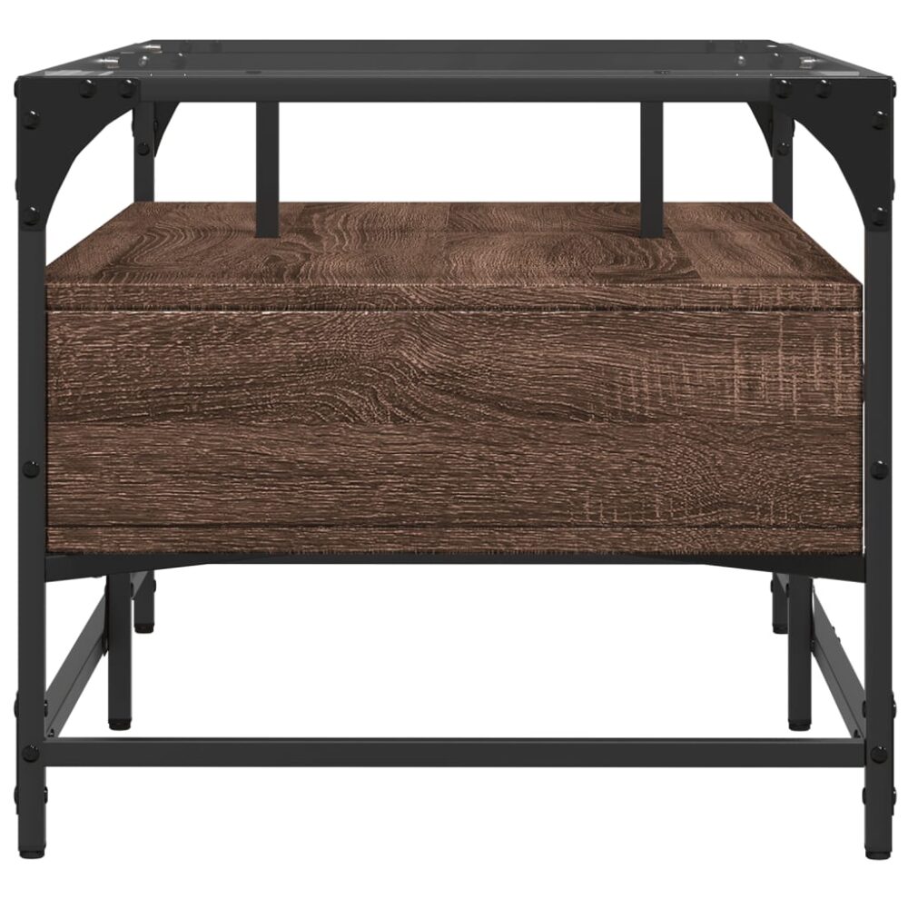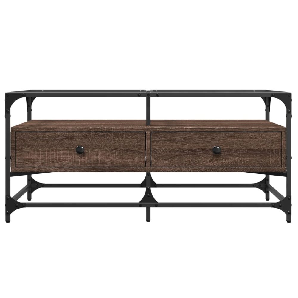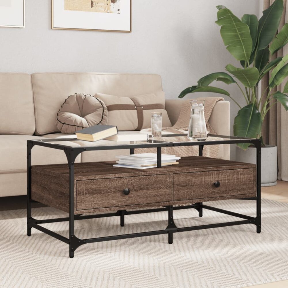 Mesa de centro c/ topo vidro 98,5x50x45cm carvalho castanho aço - PORTES GRÁTIS