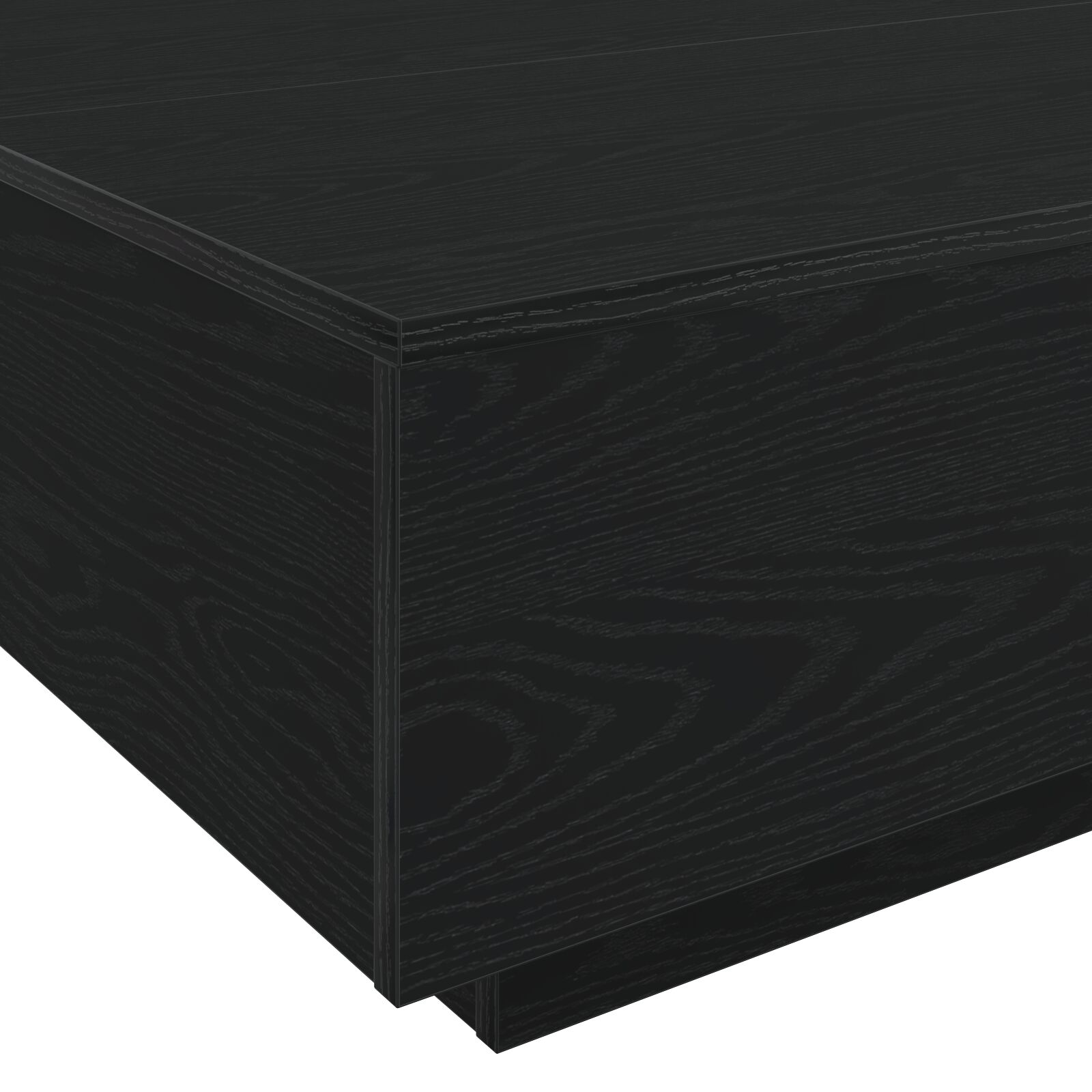Esta mesa de café com o seu acabamento em carvalho preto é o centro da sala. Combina estilo moderno com funcionalidade, sendo perfeita para colocar bebidas, livros e decoração durante encontros.