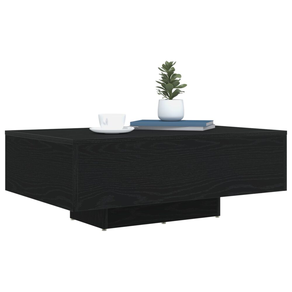 Esta mesa de café com o seu acabamento em carvalho preto é o centro da sala. Combina estilo moderno com funcionalidade, sendo perfeita para colocar bebidas, livros e decoração durante encontros.