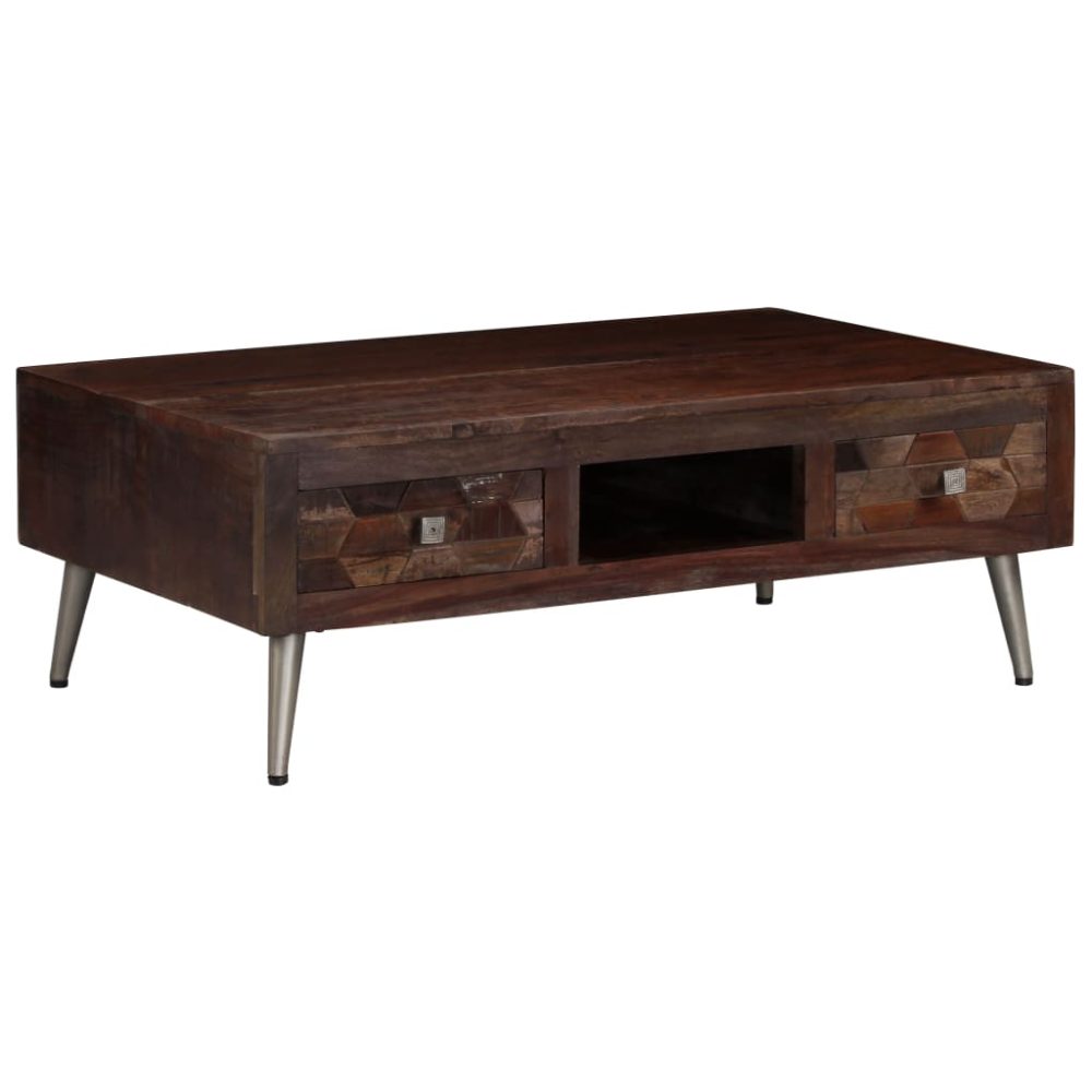 Mesa de centro em madeira reciclada maciça 100x60x35 cm - PORTES GRÁTIS