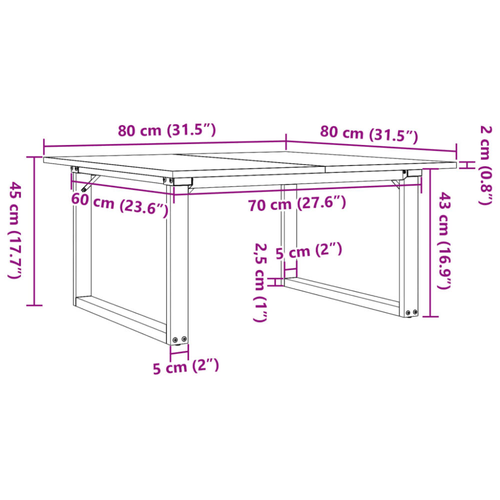 Mesa de centro estrutura em O 80x80x45 cm pinho e ferro fundido - PORTES GRÁTIS