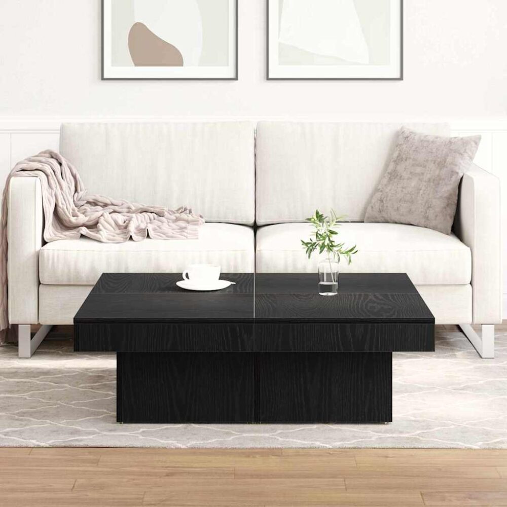 Mesa de Centro Preta em Carvalho de 90x90x28 cm de Madeira de Engenharia - PORTES GRÁTIS