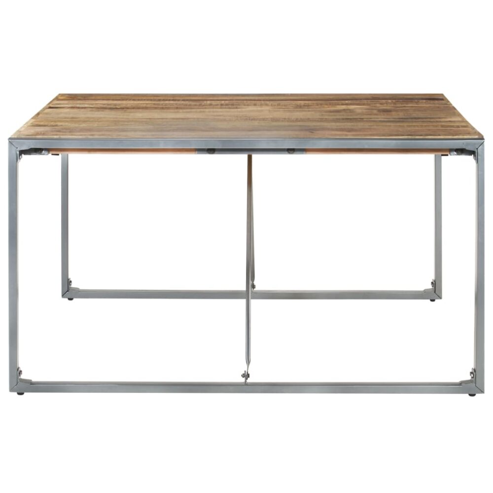 A mesa de jantar é feita em madeira de mangueira áspera, uma madeira tropical forte o suficiente para aguentar o peso. Também resiste ao desgaste causado pelo tempo, sendo estável e durável. A artesania e os bonitos grãos da madeira tornam cada peça de mobiliário única e ligeiramente diferente das restantes. As pernas de aço revestido a pó oferece uma estabilidade adicional à mesa.