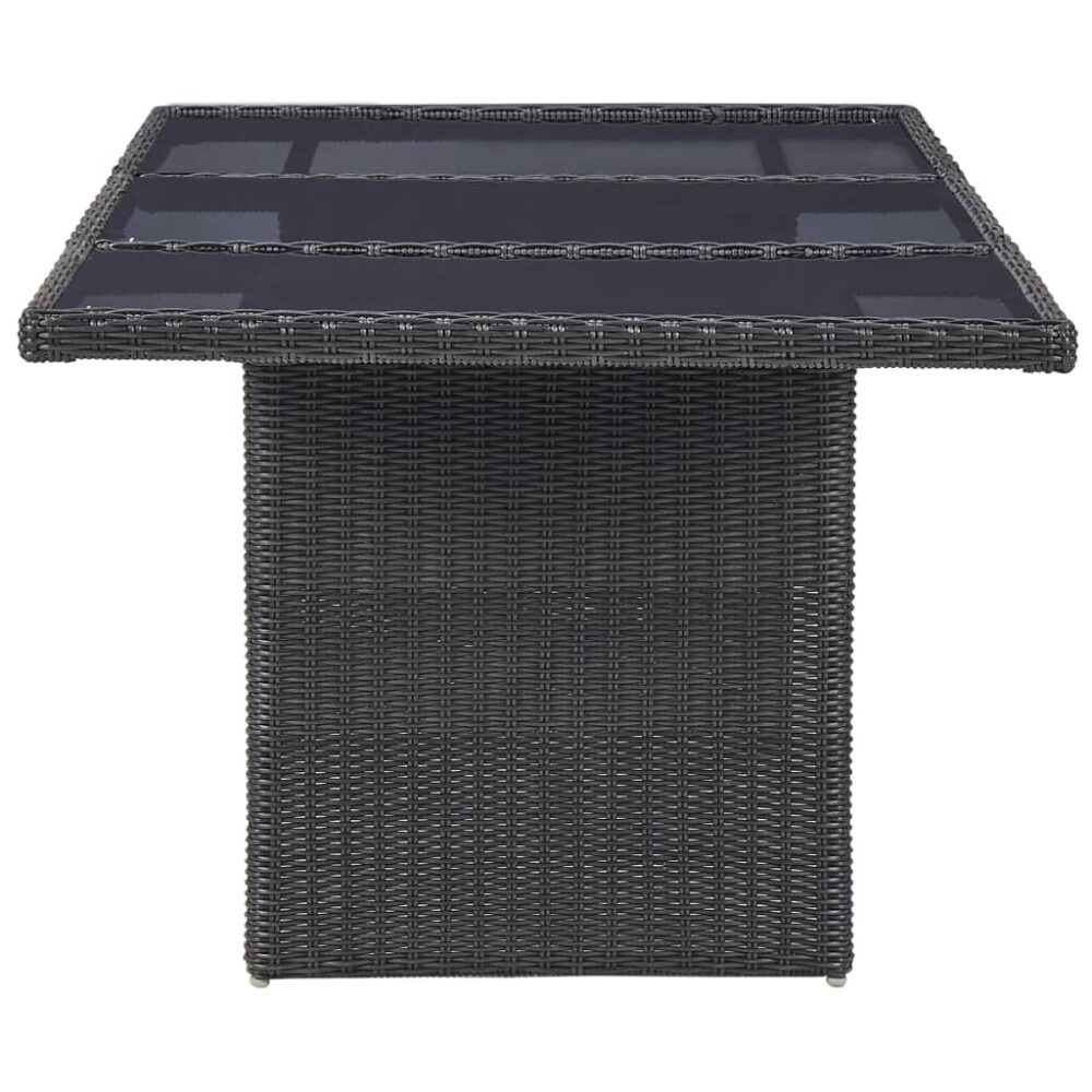 A mesa de jardim é feita de vime PE, tornando-a resistente às intempéries e durável. A estrutura de aço e o tampo de vidro tornam a mesa resistente e estável. Graças à construção leve, a mesa é também fácil de deslocar.