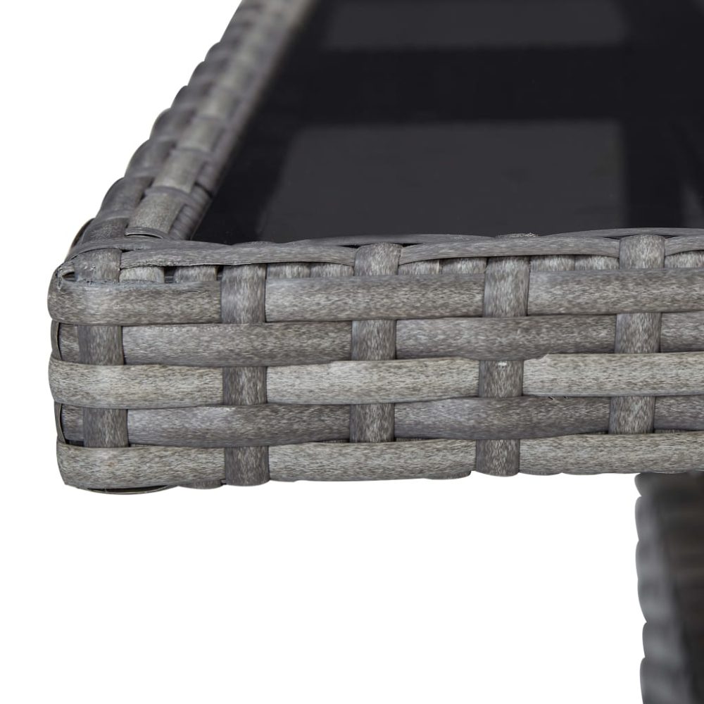 Pode desfrutar de um jantar debaixo das estrelas ou de um almoço soalheiro no pátio, com a nossa mesa de jantar. Pode acomodar até 4 pessoas. Apresentando uma estrutura de aço revestido a pó, coberta com vime PE resistente às intempéries e com proteção UV, esta mesa garante-lhe muitos anos de utilização ao ar livre. Feita com vidro temperado reforçado num forte suporte, a mesa é fácil de cuidar e limpar. A construção leve do vime facilita ainda a deslocação e a substituição desta mesa.