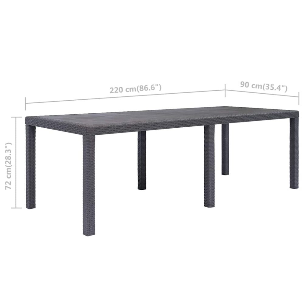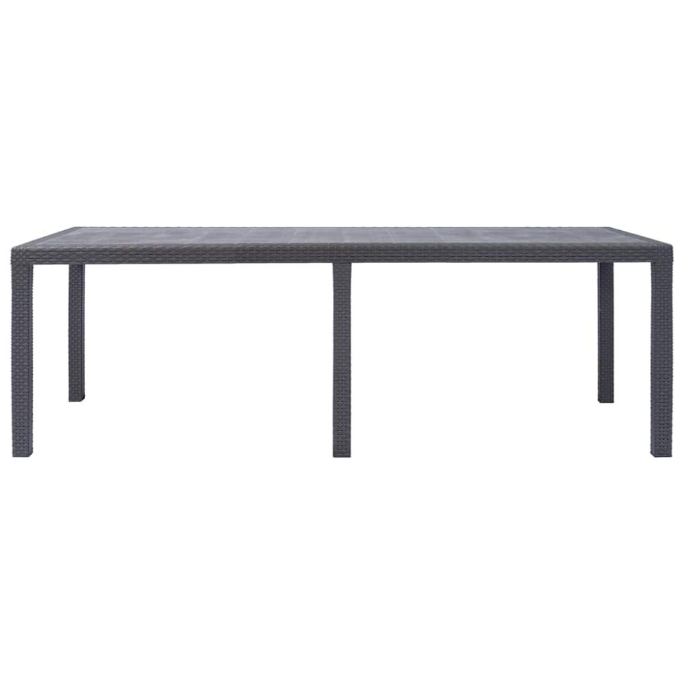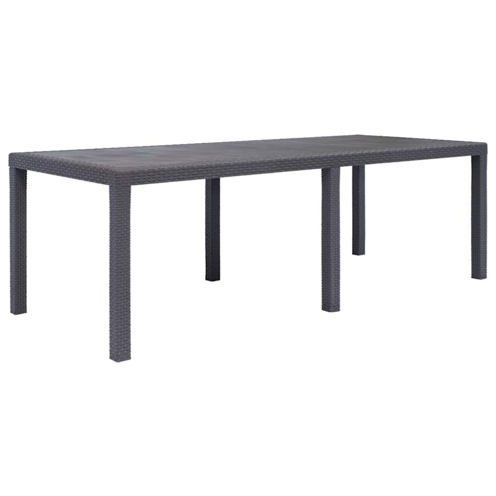 A mesa de jantar com aspeto de vime é feita de um plástico sólido, o que a torna durável e forte, bem como resistente às condições climatéricas e fácil de limpar. O seu design estilo vime adiciona um toque de charme natural ao seu espaço ao ar livre. A mesa de jardim é também leve e fácil de deslocar.