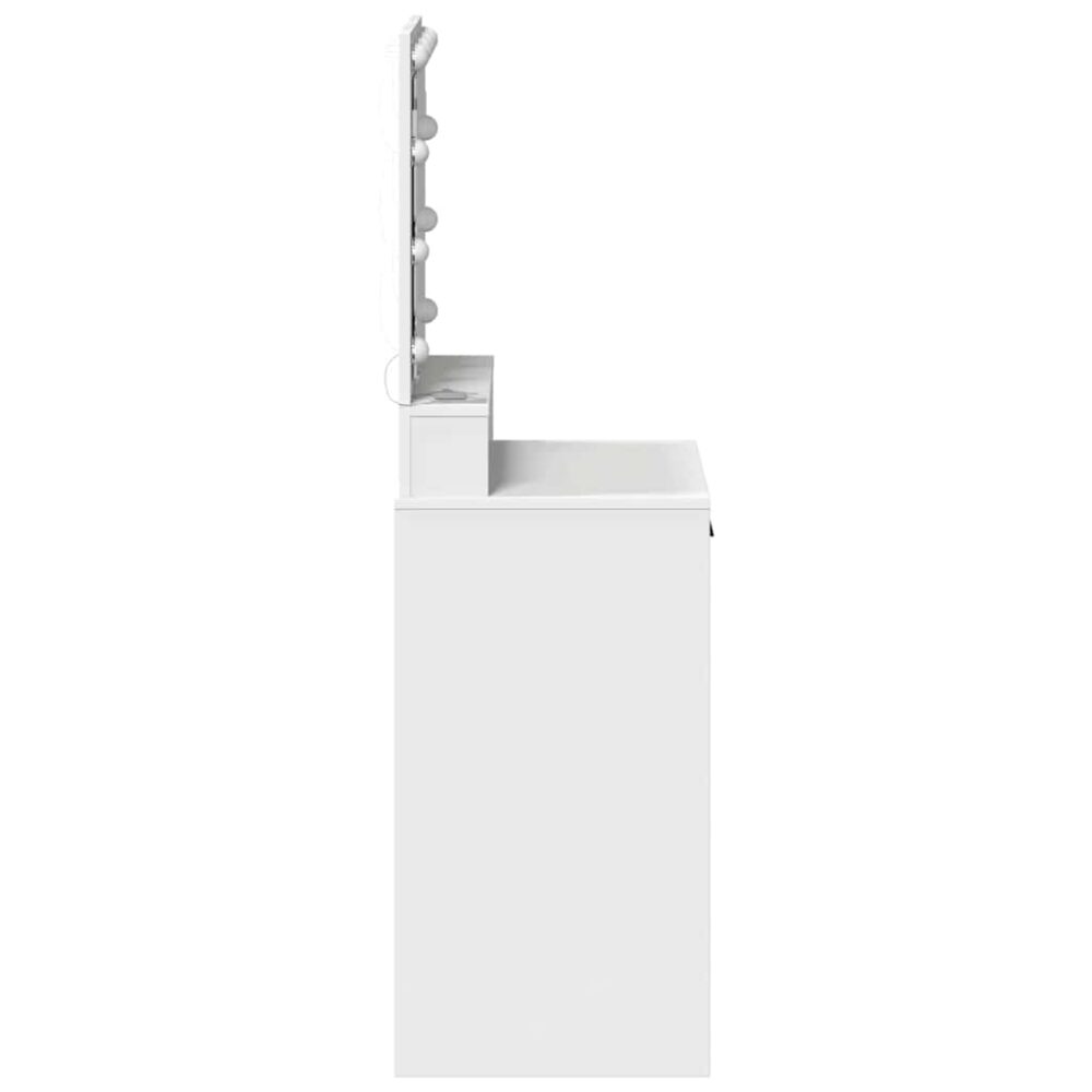 A Mesa de Maquiagem Moderna Branca com Espelho mede 50 x 41 x 135 cm, sendo uma excelente escolha para quartos que buscam estilo e eficincia. Oferece bastante espao de armazenamento, graas ao design tradicional com gavetas, ajudando a manter todos os produtos de beleza organizados. A iluminao LED facilita a visibilidade e cria uma atmosfera agradvel para a aplicao de maquiagem. A construo robusta em MDF combina estilo com funcionalidade, resultando numa pea durvel para o dia a dia. Ideal para quem procura uma adio estilosa e prtica ao espao pessoal, esta mesa de vaidade representa bem o design moderno. Por favor, utilize apenas entrada certificada de 5V DC. Uma voltagem superior pode causar sobreaquecimento, danificar o dispositivo e aumentar o risco de sobreaquecimento e incêndio. Não conecte este produto a qualquer fonte de energia diferente da descrita no manual, na placa de identificação ou especificamente recomendada pela vidaXL. Este aparelho não deve ser usado por crianças com 14 anos ou menos, nem por pessoas com capacidades físicas, sensoriais ou mentais reduzidas ou sem experiência e conhecimento sobre o uso de aparelhos eletrônicos. A eletricidade é perigosa. Danos, instalação inadequada, uso ou alterações (substituição de componentes individuais) podem danificar o aparelho, causar choque elétrico e colocar o usuário em risco. Não utilize este produto em atmosferas explosivas, como na presença de líquidos inflamáveis, gases, poeiras ou em temperaturas acima de 50 graus Celsius. Não ligue o produto se o cabo de conexão ou a fonte de alimentação estiver visivelmente danificado. Se o cabo externo flexível ou o fio deste dispositivo estiver danificado, ele deve ser substituído exclusivamente pelo fabricante, agente de serviço ou pessoa qualificada para evitar riscos. Desligue a energia durante a instalação e manutenção. Certifique-se de que as lâmpadas estão frias. A fonte de luz deste aparelho não é substituível; quando atingir o fim da sua vida útil, todo o aparelho deve ser substituído. Somente para uso interno, não utilize este produto ao ar livre.