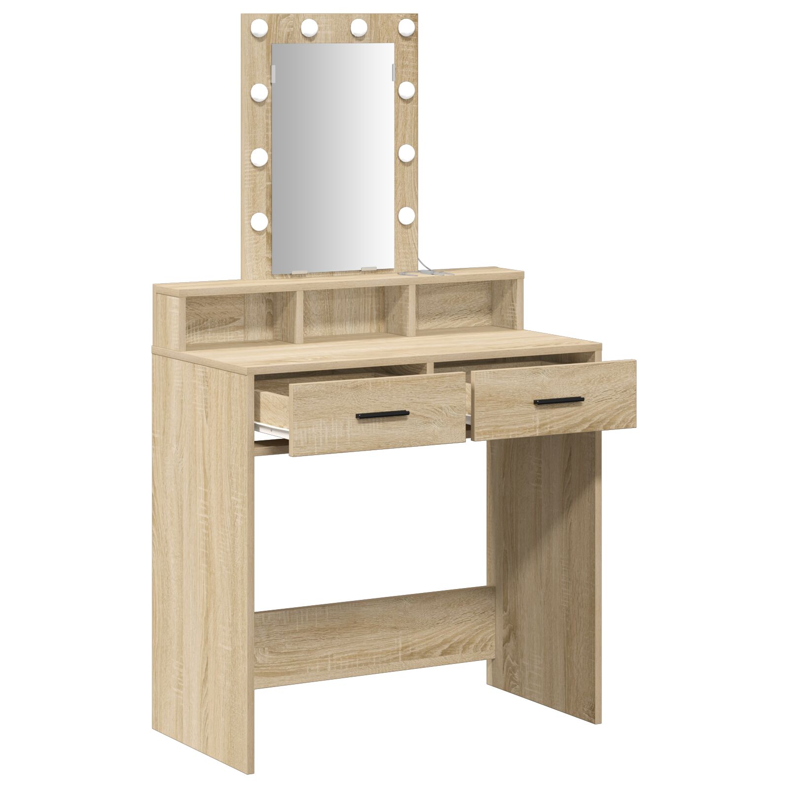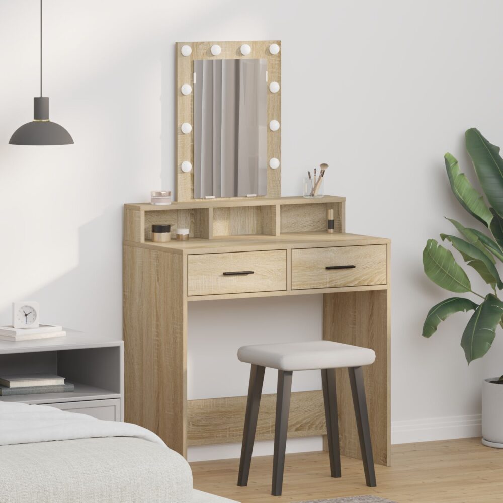 Esta Unidade de Toucador Contempornea em Carvalho Sonoma combina estilo com praticidade, perfeita para quem precisa de um espao para cuidar da beleza. Com linhas limpas e um design moderno, serve bem para rotinas de beleza, seja num cantinho do quarto ou como um elemento elegante no banheiro. Com gavetas espaosas, tudo fica organizado e fcil de acessar. Com 79 x 41 x 140 cm, esta unidade transforma qualquer espao num local de tocador estiloso. ideal para quem adora maquilhagem ou para quem quer agilizar o ritual matinal, oferecendo conforto e durabilidade com iluminao LED embutida e construo em madeira slida. Por favor, utilize apenas entrada certificada de 5V DC. Uma voltagem superior pode causar sobreaquecimento, danificar o dispositivo e aumentar o risco de sobreaquecimento e incêndio. Não conecte este produto a qualquer fonte de energia diferente da descrita no manual, na placa de identificação ou especificamente recomendada pela vidaXL. Este aparelho não deve ser usado por crianças com 14 anos ou menos, nem por pessoas com capacidades físicas, sensoriais ou mentais reduzidas ou sem experiência e conhecimento sobre o uso de aparelhos eletrônicos. A eletricidade é perigosa. Danos, instalação inadequada, uso ou alterações (substituição de componentes individuais) podem danificar o aparelho, causar choque elétrico e colocar o usuário em risco. Não utilize este produto em atmosferas explosivas, como na presença de líquidos inflamáveis, gases, poeiras ou em temperaturas acima de 50 graus Celsius. Não ligue o produto se o cabo de conexão ou a fonte de alimentação estiver visivelmente danificado. Se o cabo externo flexível ou o fio deste dispositivo estiver danificado, ele deve ser substituído exclusivamente pelo fabricante, agente de serviço ou pessoa qualificada para evitar riscos. Desligue a energia durante a instalação e manutenção. Certifique-se de que as lâmpadas estão frias. A fonte de luz deste aparelho não é substituível; quando atingir o fim da sua vida útil, todo o aparelho deve ser substituído. Somente para uso interno, não utilize este produto ao ar livre.