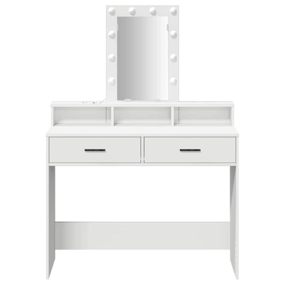 Eleva a tua rotina de beleza com a Mesa de Maquilhagem Moderna Branca. Tem um estilo moderno, prtica e oferece bastante arrumao. Ideal para quem gosta de maquilhagem e pretende manter tudo em ordem, com gavetas e prateleiras resistentes. As luzes LED embutidas so timas para momentos de maquilhagem e penteados. Perfeita para quartos, esta vanidade encaixa-se bem em casas modernas, sendo tima para adultos e para quem mais. O espelho acrescenta uma classe extra e til. Opta por esta vanidade estilosa para tornar a tua rotina diria um pouco mais especial. Por favor, utilize apenas entrada certificada de 5V DC. Uma voltagem superior pode causar sobreaquecimento, danificar o dispositivo e aumentar o risco de sobreaquecimento e incêndio. Não conecte este produto a qualquer fonte de energia diferente da descrita no manual, na placa de identificação ou especificamente recomendada pela vidaXL. Este aparelho não deve ser usado por crianças com 14 anos ou menos, nem por pessoas com capacidades físicas, sensoriais ou mentais reduzidas ou sem experiência e conhecimento sobre o uso de aparelhos eletrônicos. A eletricidade é perigosa. Danos, instalação inadequada, uso ou alterações (substituição de componentes individuais) podem danificar o aparelho, causar choque elétrico e colocar o usuário em risco. Não utilize este produto em atmosferas explosivas, como na presença de líquidos inflamáveis, gases, poeiras ou em temperaturas acima de 50 graus Celsius. Não ligue o produto se o cabo de conexão ou a fonte de alimentação estiver visivelmente danificado. Se o cabo externo flexível ou o fio deste dispositivo estiver danificado, ele deve ser substituído exclusivamente pelo fabricante, agente de serviço ou pessoa qualificada para evitar riscos. Desligue a energia durante a instalação e manutenção. Certifique-se de que as lâmpadas estão frias. A fonte de luz deste aparelho não é substituível; quando atingir o fim da sua vida útil, todo o aparelho deve ser substituído. Somente para uso interno, não utilize este produto ao ar livre.