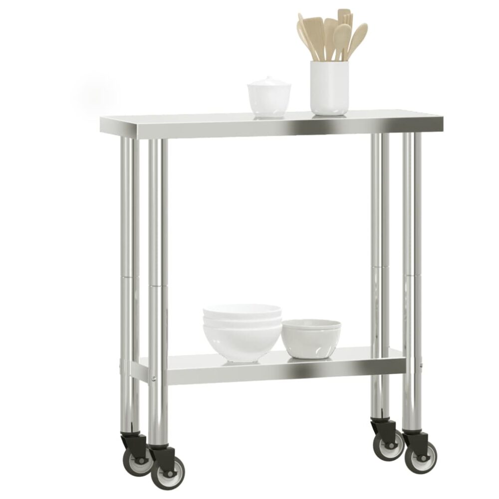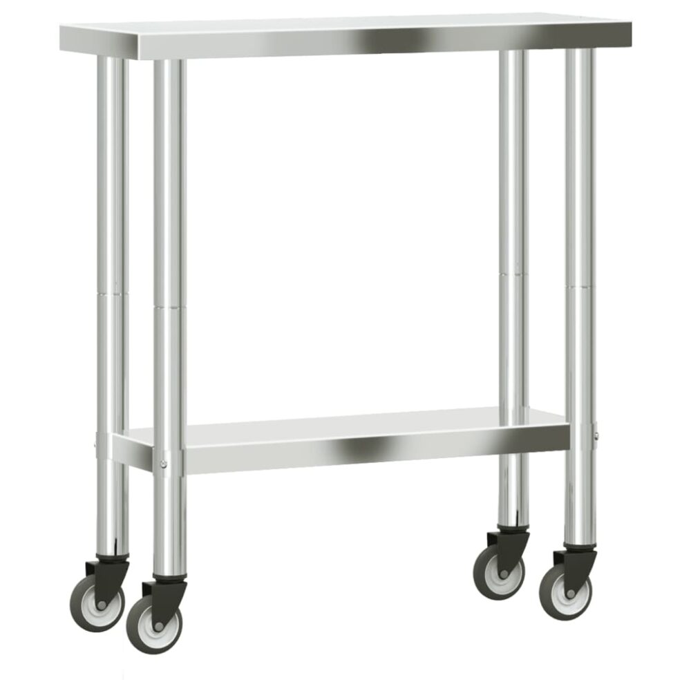 Mesa de trabalho de cozinha c/ rodas 82,5x30x85 cm aço inox. - PORTES GRÁTIS