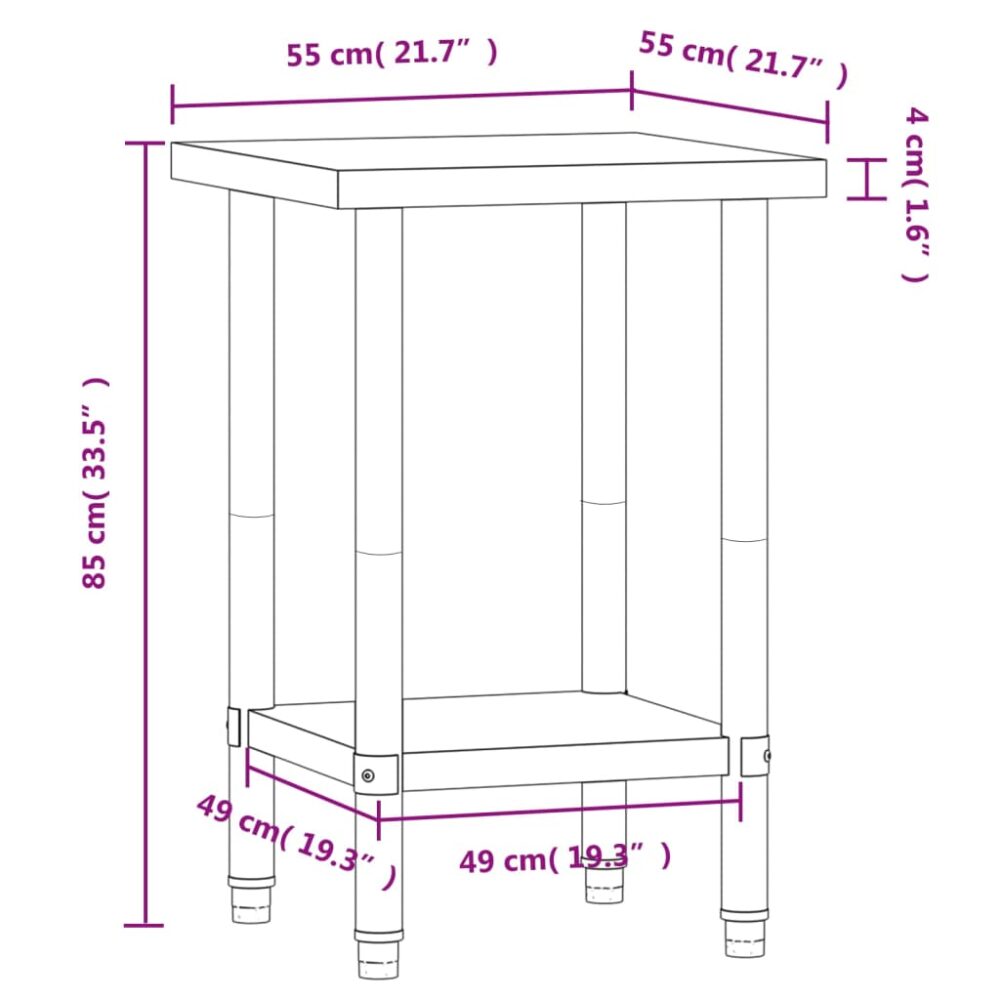 Mesa de trabalho para cozinha 55x55x85 cm aço inoxidável - PORTES GRÁTIS